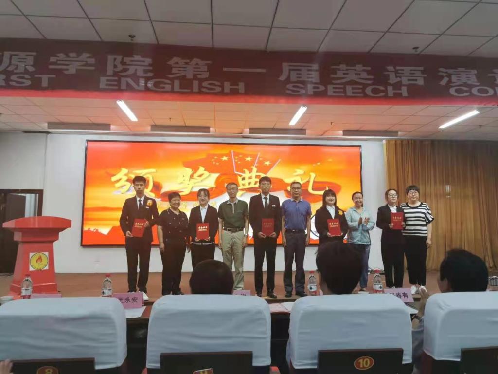 英语教研室主任赵娟老师对本次大赛的相关情况做了简单介绍;特邀专家张海涛教授对选手的表现作出精彩点评;学生代表白志武同学发表了获奖感言;一等奖获得者秦晓娜同学现场重现了“My Motherland and I”。