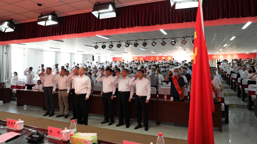 颁奖结束后,党委书记董峰带领全体党员庄严宣誓,一起重温入党誓词。