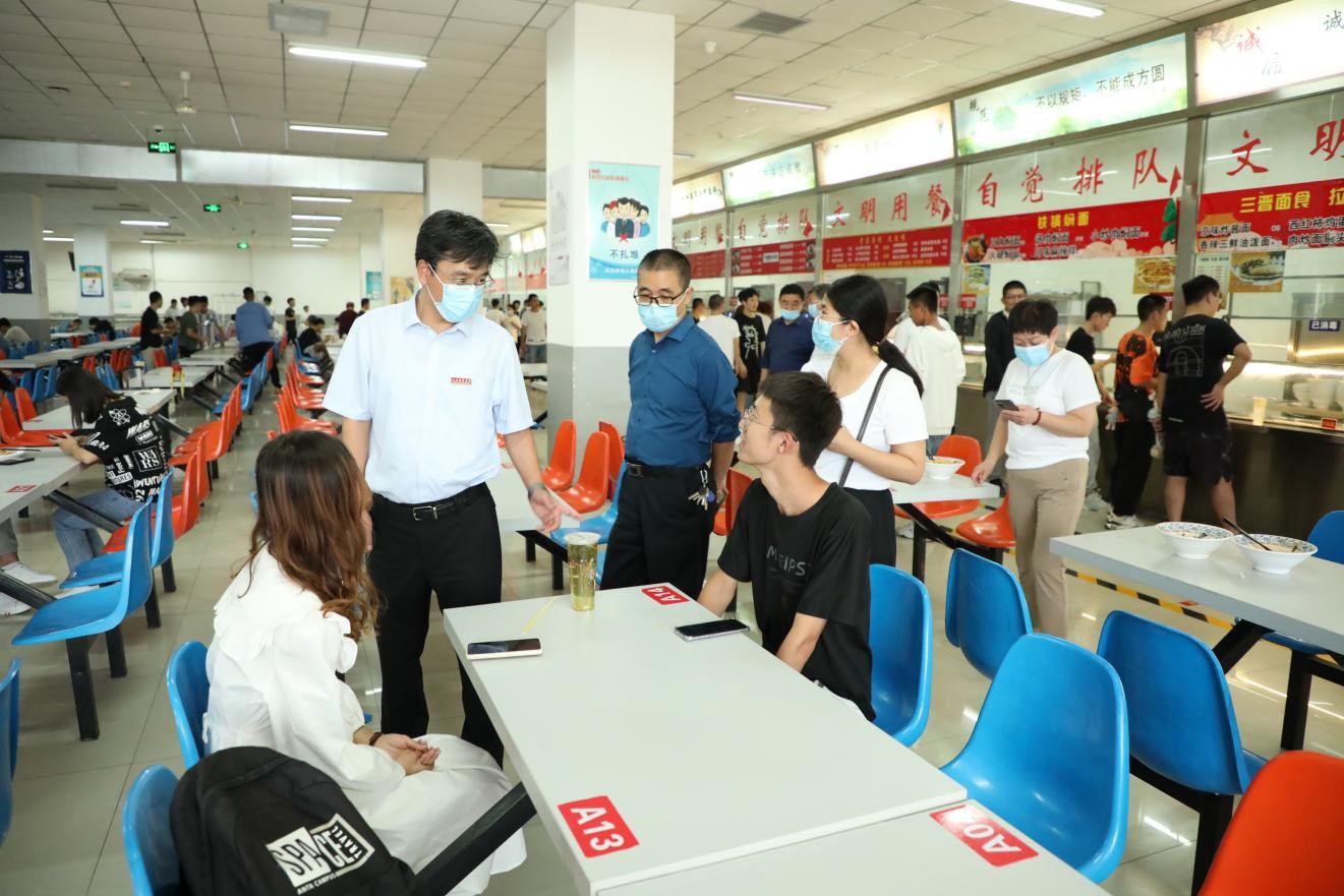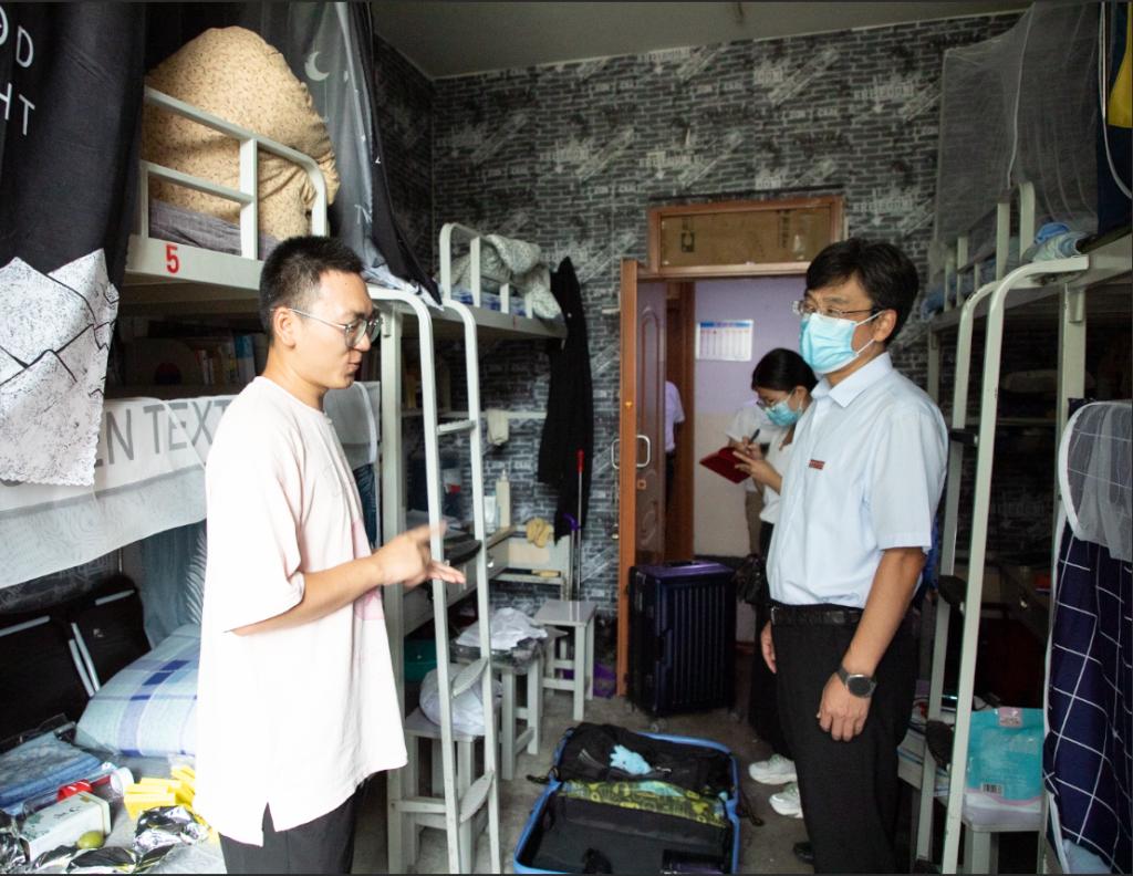 9月3日下午,梁卫国院长、孙光辉副院长来到学生返校报到处、学生公寓及食堂,查看学生返校工作。院长办公室、学生工作部、保卫部、后勤保障部负责人及相关工作人员陪同。
