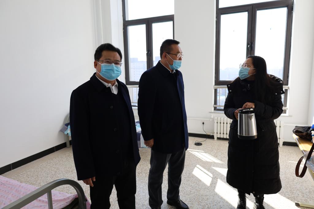 2022年2月21日上午九点半,校党委书记冯锋、副院长(主持行政工作)冯国瑞、副院长孙光辉带领世界杯官网疫情防控办各成员单位负责人对世界杯官网疫情防控工作进行督导检查。