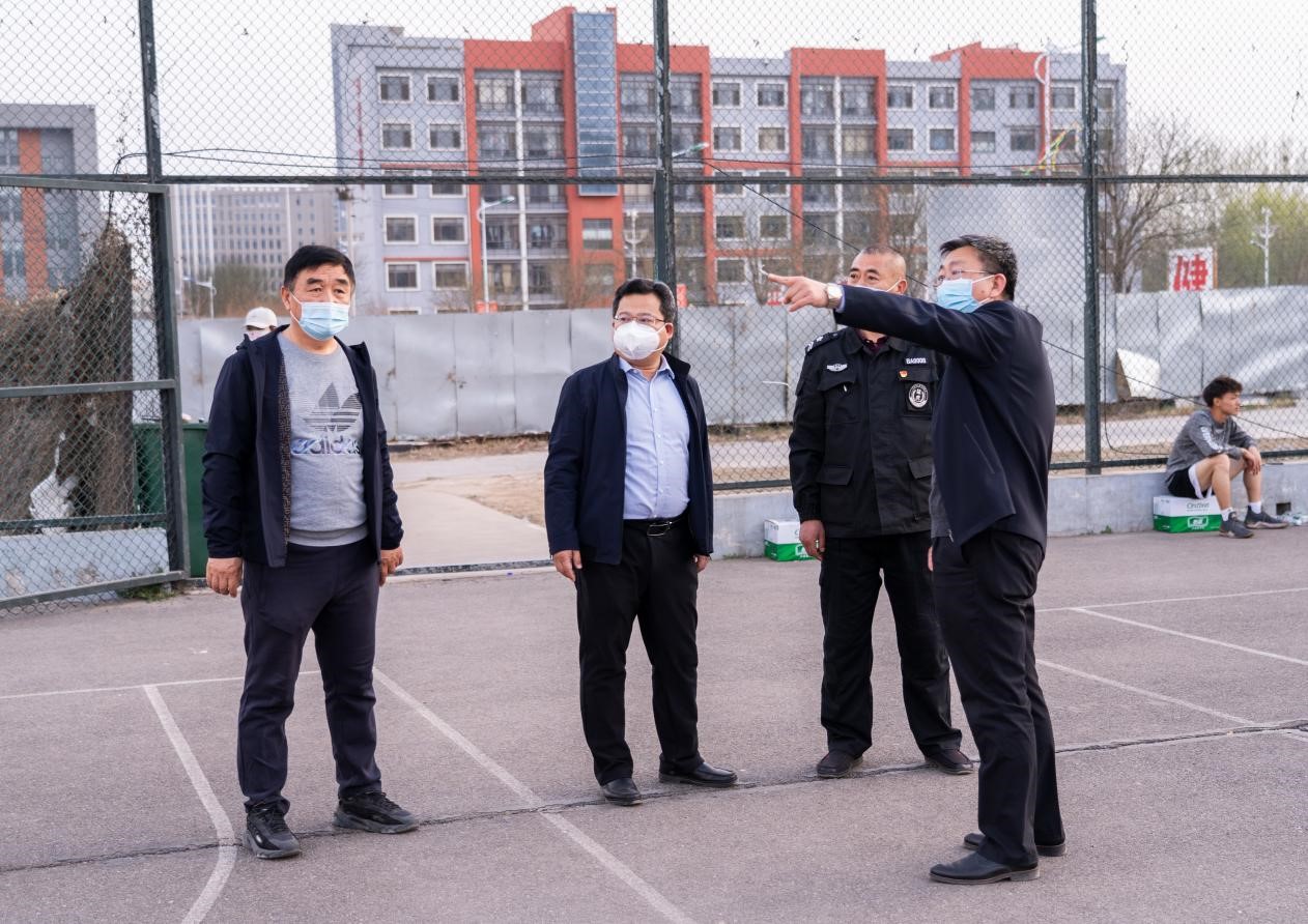 4月8日下午,在校党委书记冯锋的安排下,党委副书记、副院长冯国瑞(主持行政工作)深入校园,针对疫情防控的薄弱环节,围绕世界杯官网东侧围墙问题、篮球场设施建设等工作进行调研并指导。党委委员、副院长孙光辉,保卫部负责人陪同调研。
