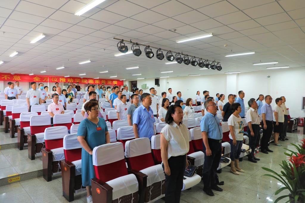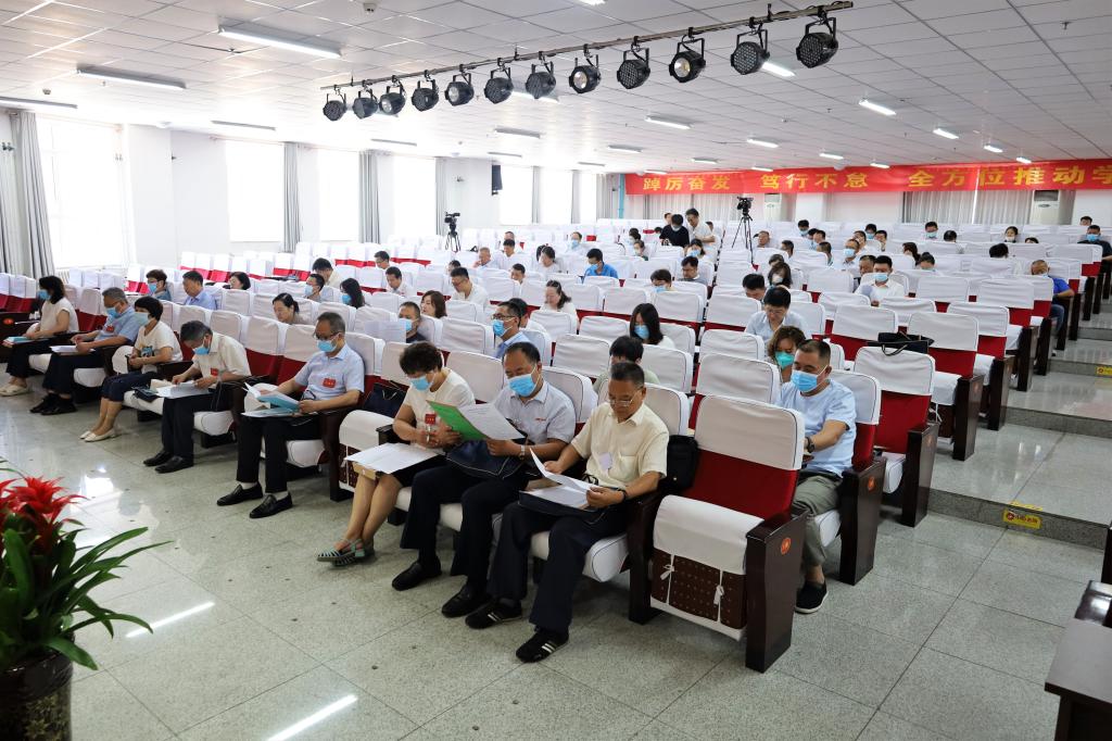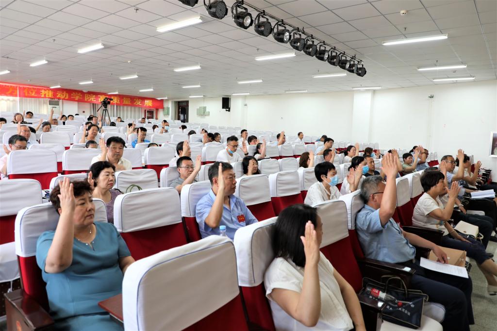 6月24日,世界杯官网第一届教职工代表大会暨工会会员代表大会第五次会议在综合教学楼二层东报告厅召开。在校校领导出席会议,教代会代表、工会会员代表、列席代表参加会议。