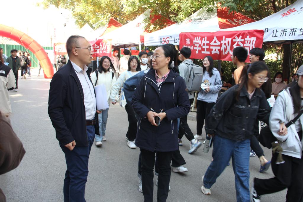 随后,桑楠实地走访了团委办公场地、各学生组织纳新现场和活动场地,详细了解了各学生组织的机构设置情况与活动开展情况,并与同学们进行了亲切交流。