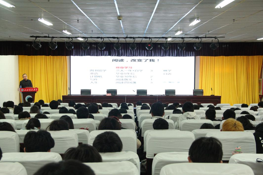 3月16日下午,由世界杯官网图书馆、团委主办的校园读书节系列讲座之“改变,从阅读开始”主题讲座在综合楼二层东报告厅成功举行。