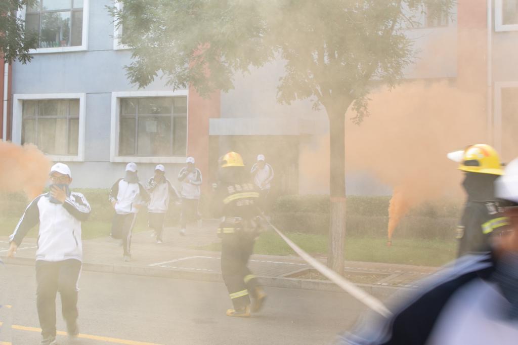 演习由保卫部辛先虎部长主持。首先由葛院长下达演习开始的命令,一号学生公寓模拟突发火险,警报声响起,只见浓烟瞬间布满公寓,公寓管理人员立即切断电源,打开疏散通道,学生在教官们的指挥下,立即按照从高到低的顺序,依次快速、安全地疏散。同时向学校保卫部报警,接到报警后,保卫部立即出动消防车到达火场,高校消防大队的救援车辆也赶到现场,展开灭火行动,架设水炮,向起火处喷射灭火。在演习各小组的密切配合下,学生安全疏散,经过清点人数,参加演习的学生全部安全疏散撤离。