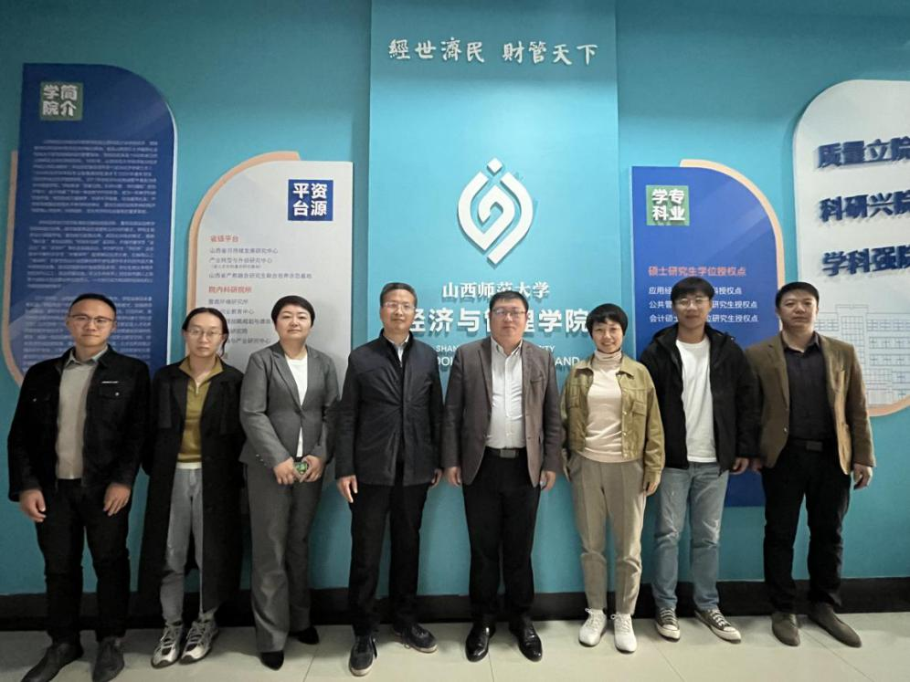 为了进一步推进经济系本科教学合格评估工作,2023年10月31日,经济系行政负责人戴国宝副教授、综合办公室主任曹云老师、高层次优秀人才崔泽园副教授、财务管理专业教研室主任郭嫣然老师一行前往山西师范大学经济与管理学院进行交流学习,受到了山西师范大学经济与管理学院院长邰秀军教授、工商管理系主任陈天老师、经济系主任张百顺老师和应急管理系主任白俊老师的热情接待。