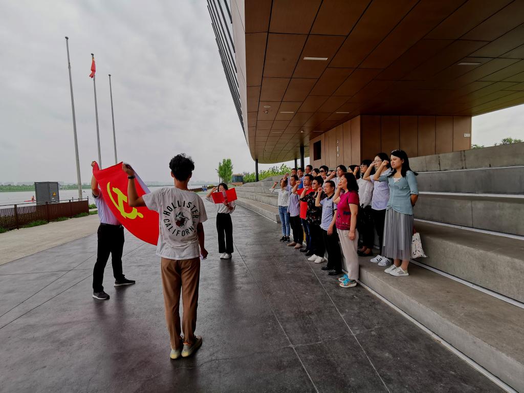 随后,在风景优美的汾河公园内,党员干部们统一佩戴党员徽章,整齐列队,在党旗下庄严宣誓,重温入党誓词。通过重温誓言,进一步牢记共产党员的政治责任和历史使命,牢记无论在任何情形下都要践行责任、恪守义务,永葆共产党员的先进本色。宣誓结束后,全体教师党员在公园沿岸合唱《没有共产党就没有新中国》、《我和我的祖国》等歌曲,讴歌党的丰功伟绩,祝福祖国繁荣昌盛。