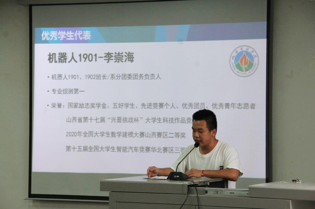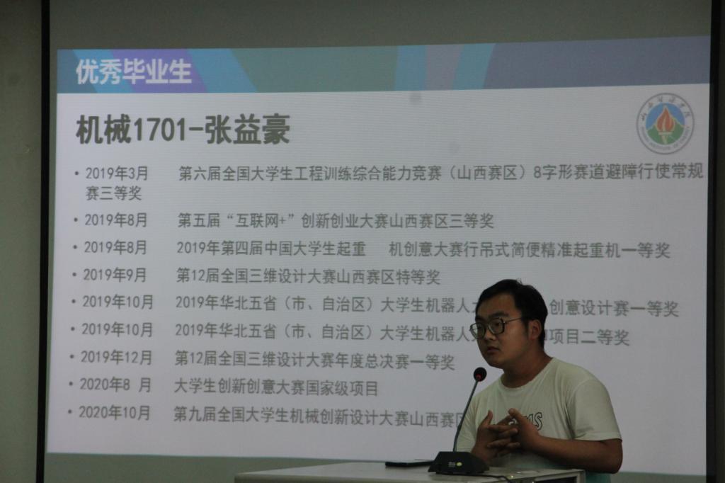 优秀学生党员王光耀和优秀学生干部李崇海,就自身的学习和班级工作,与大家进行了交流。并代表参会学生,祝即将毕业的学长学姐们前程似锦,未来可期。