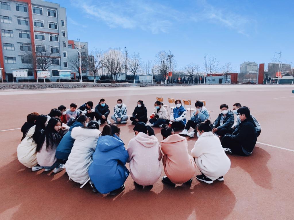 3月4日下午,天气晴朗,学院操场一角,系党总支书记马蔚东、专职辅导员田晓晖和贺慧老师与同学们围坐一圈,和大家开始交流。在此之前,马蔚东书记和两位辅导员为这次活动也做了充分的准备,设想和同学们交流内容,但封闭管理期间我们最需要知道和了解的是学生的情绪、需求和心声——这样才能更好地帮助学生将有效的时间走进图书馆徜徉在书海之中;奔跑在操场上挥洒在汗水中;飞扬在舞台上展现青春的色彩中……