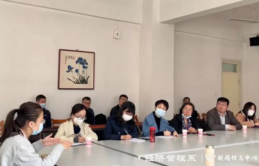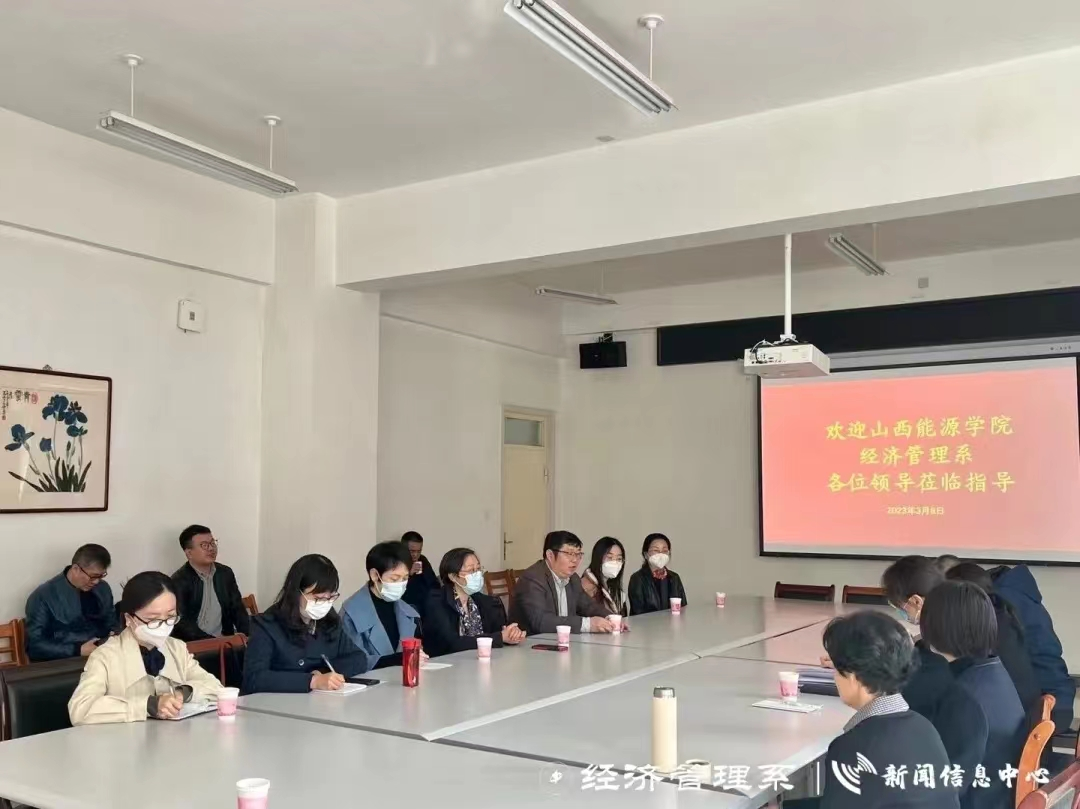 2023年3月8日上午,经济系行政负责人戴国宝、教学副主任徐英、综合办公室主任曹云、三个教研室主任及骨干教师一行来到晋中学院经济管理系开展学术交流活动。晋中学院经济管理系主任刘亚丽、主持工作的党总支副书记冀里萃、副主任赵云海与各教研室教师代表接待交流。