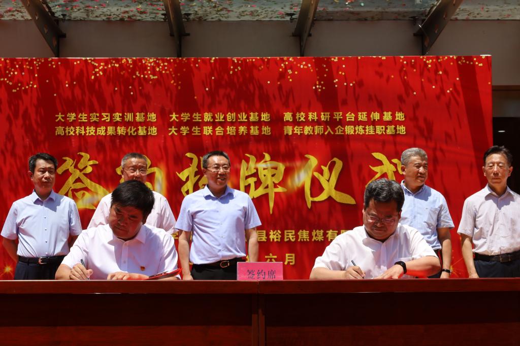 签约揭牌仪式现场气氛热烈,彩旗飘飘、锣鼓喧天、礼炮齐鸣。出席现场签约揭牌仪式的校领导有:党委书记冯锋,党委副书记、副院长(主持行政工作)冯国瑞,党委副书记马光生、曲晋山,纪委书记杜锋,副院长孙光辉、孟文俊,世界杯官网有关部门负责人、驻村工作队员也参加了仪式。两个企业的部分干部职工参加了仪式。省直驻临县帮扶大队长、省农业农村厅二级巡视员岳继和,临县县委常委、组织部部长马健,临县政府副县长雒丽霞,县委组织部副部长闫平,县教育局局长陈国民,县湍水头镇党委书记高艳飞,县下乡办主任郝小龙,临县裕民焦煤有限公司党委书记秦世芝,临县裕民焦煤有限公司董事长秦勇,山西临县华润联盛黄家沟煤业有限公司矿长陈学亚出席了签约揭牌仪式。仪式由临县政府副县长雒丽霞主持。此次签约揭牌仪式县委县政府给予了高度重视。校地校企合作是发展乡村振兴战略和加快全面推进乡村振兴步伐工作中的重要一个部分。裕民煤矿董事长秦勇上台发言并详细介绍本矿区的基本情况和发展史,黄家沟煤矿矿长陈学亚详细介绍了本矿区的基本情况及发展历程。
