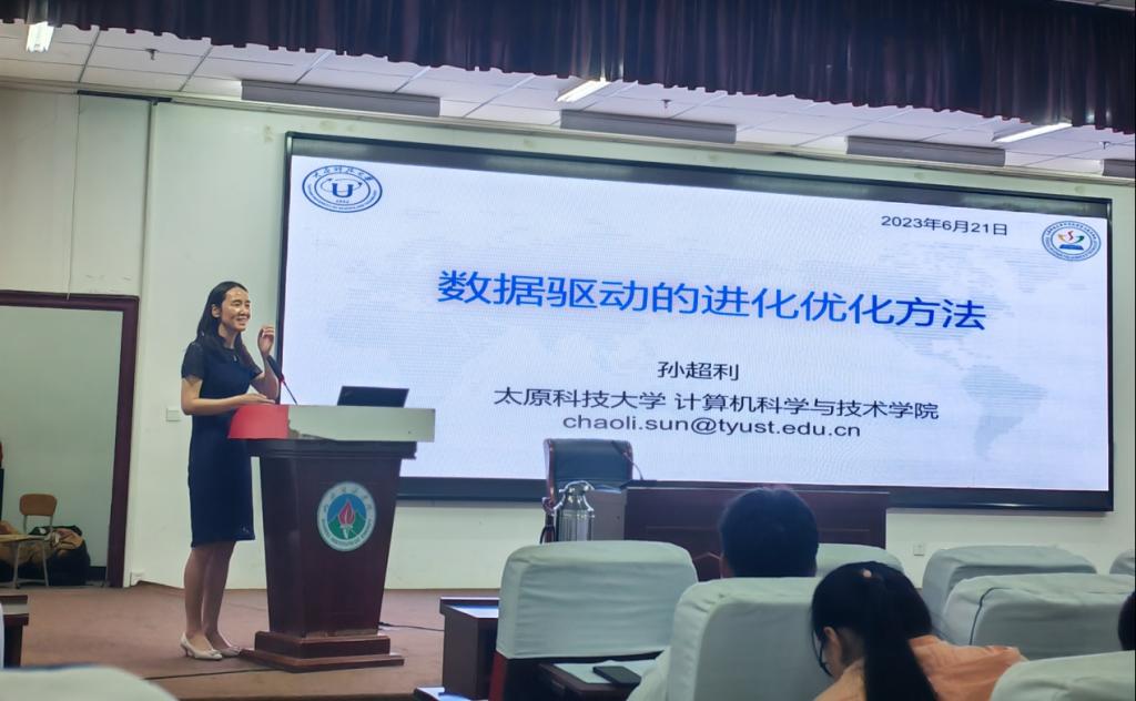 为拓宽世界杯官网师生学术视野,促进对计算机数据驱动优化前沿理论与技术的了解。6月21日下午,由科技产业部主办、计算机与信息工程系承办的“能源大讲堂”学术讲座在综合楼报告厅举行。太原科技大学计算机科学与技术学院孙超利教授受邀作了题目为“数据驱动的进化优化方法”的专题讲座。讲座由计算机与信息工程系周云飞副主任主持,他介绍了孙教授的个人情况及学术成就,并代表学校对孙教授的到来表示热烈欢迎。出席讲座的还有计算机与信息工程系主任邓越萍、教学科研办副主任薛芳芳、专职辅导员赵彩霞。