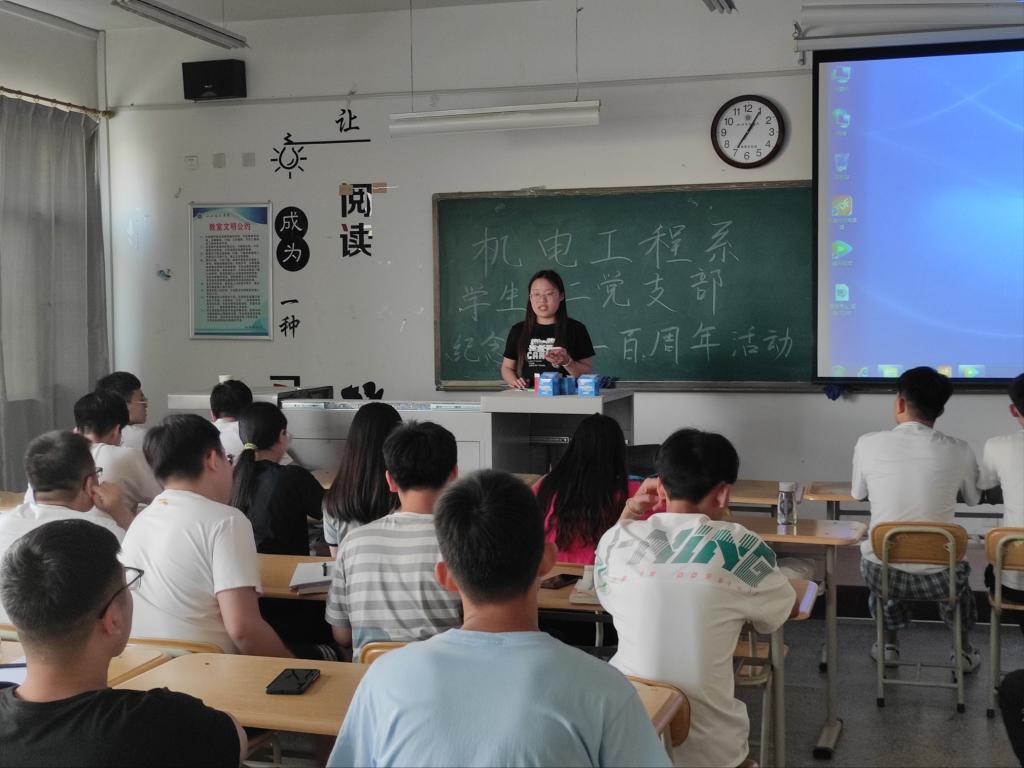 2021年的“七一”是中国共产党成立100周年纪念日。为深入贯彻落实党的十九大、十九届二中、三中、四中、五中全会精神,提升我系党组织的号召力、凝聚力和战斗力,机电工程系学生第二党支部于6月7日开展了红色电影展播以及重温入党誓词活动。
