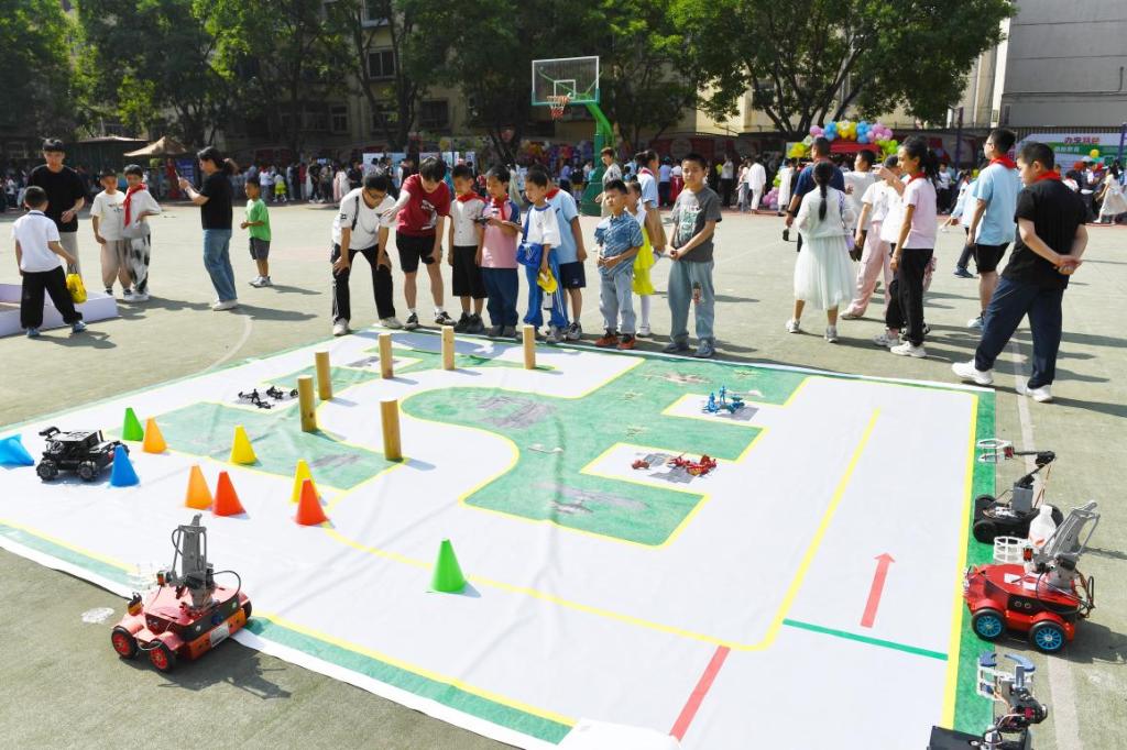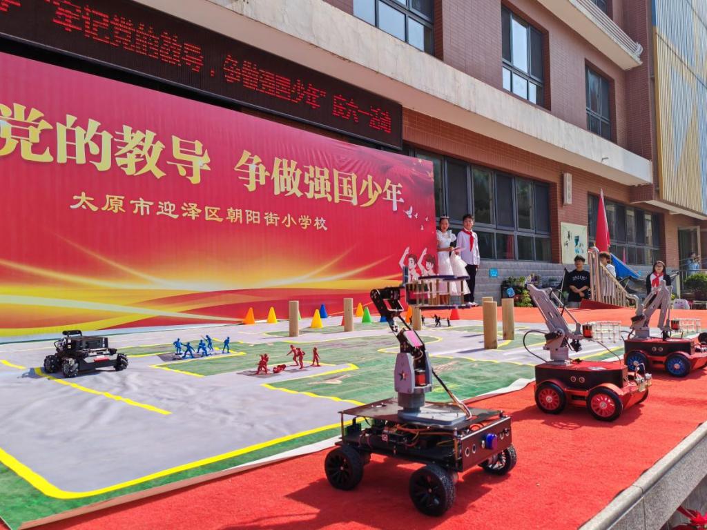 5月29日,太原市迎泽区朝阳街小学的操场变身"科技乐园"。2026年国际足联世界杯机器人创新中心的师生们带着他们的"机器人天团"来到这里,为孩子们带来了一场充满未来感的科普盛宴。本次活动得到了校团委赵浩成副书记(主持工作)和机电工程系张子英副主任(主持工作)的大力支持。在机器人创新中心师生的精心准备下,这场活动不仅让孩子们近距离接触了前沿科技,更在他们心中播下了科学的种子。