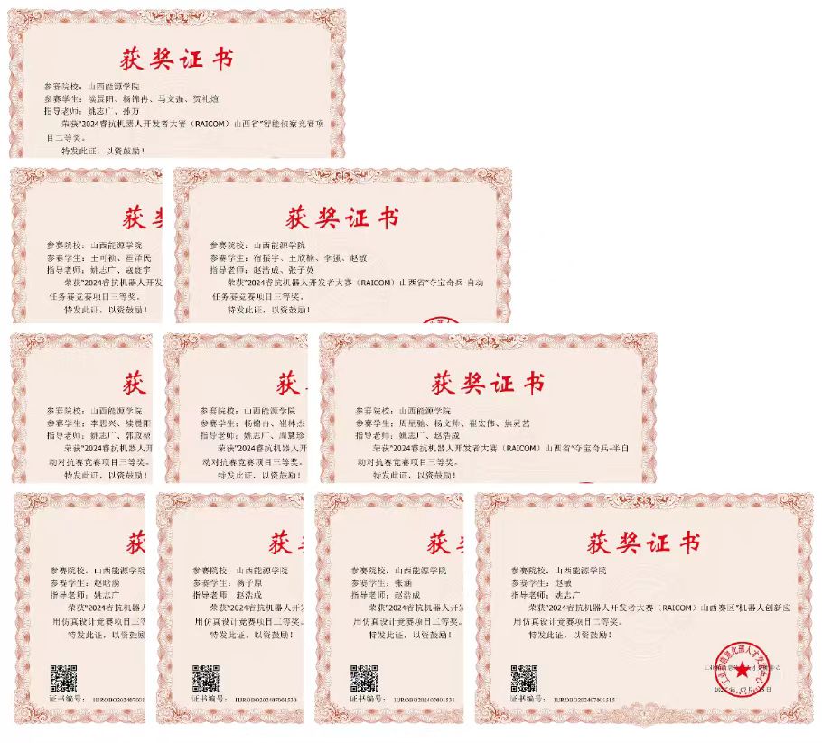这些优异成绩的取得,离不开参赛成员们的辛勤付出和努力拼搏,他们在备赛期间刻苦钻研、不断尝试,克服了重重困难。同时,指导老师姚志广、赵浩成、张子英、寇寰宇、孙万和任晓霞等的悉心指导也起到了至关重要的作用,他们为参赛队伍提供了专业的知识和宝贵的经验,帮助队员们不断提升自己的能力。