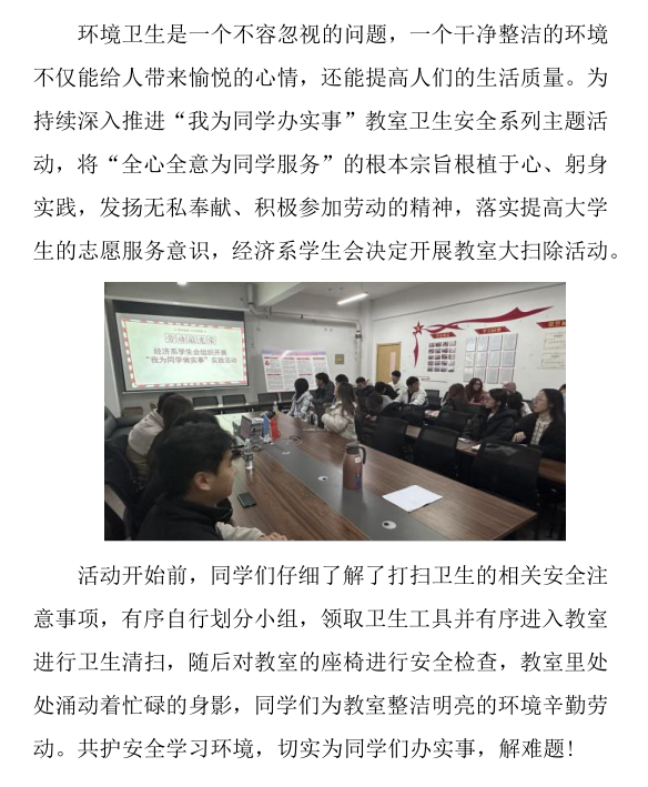 经济系开展“我为同学办实事”教室卫生安全系列主题活动