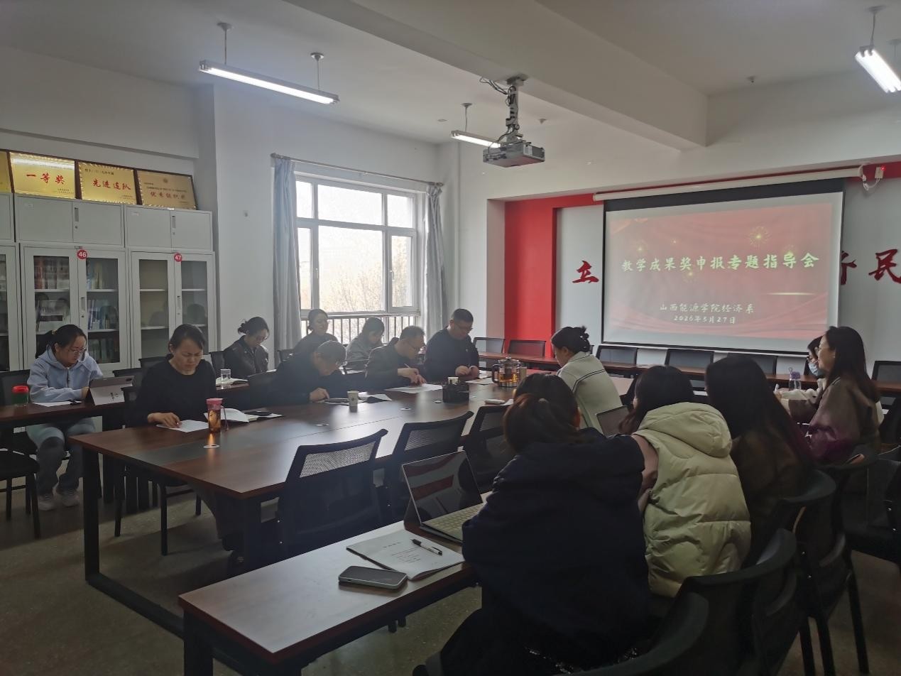 为进一步提升经济系教育教学研究水平,凝练教学成果特色,扎实做好教学成果奖申报准备工作,2026年3月27日,经济系在系会议室举办了教学成果奖申报专题指导会。会议特邀山西师范大学经济与管理学院院长邰秀军教授、经济系主任赵永斌博士作专题辅导报告。经济系主任戴国宝、主管教学副主任郭瑶华、各教研室主任和拟申报教学成果奖负责人及团队成员等参加了此次会议。