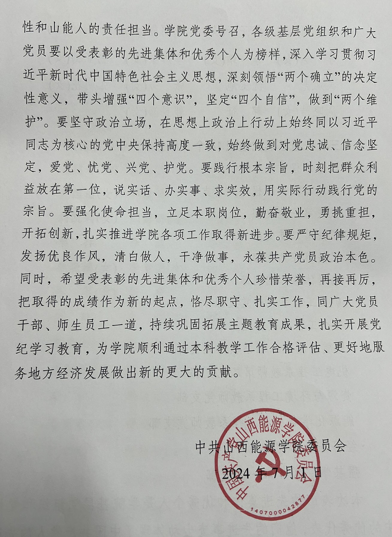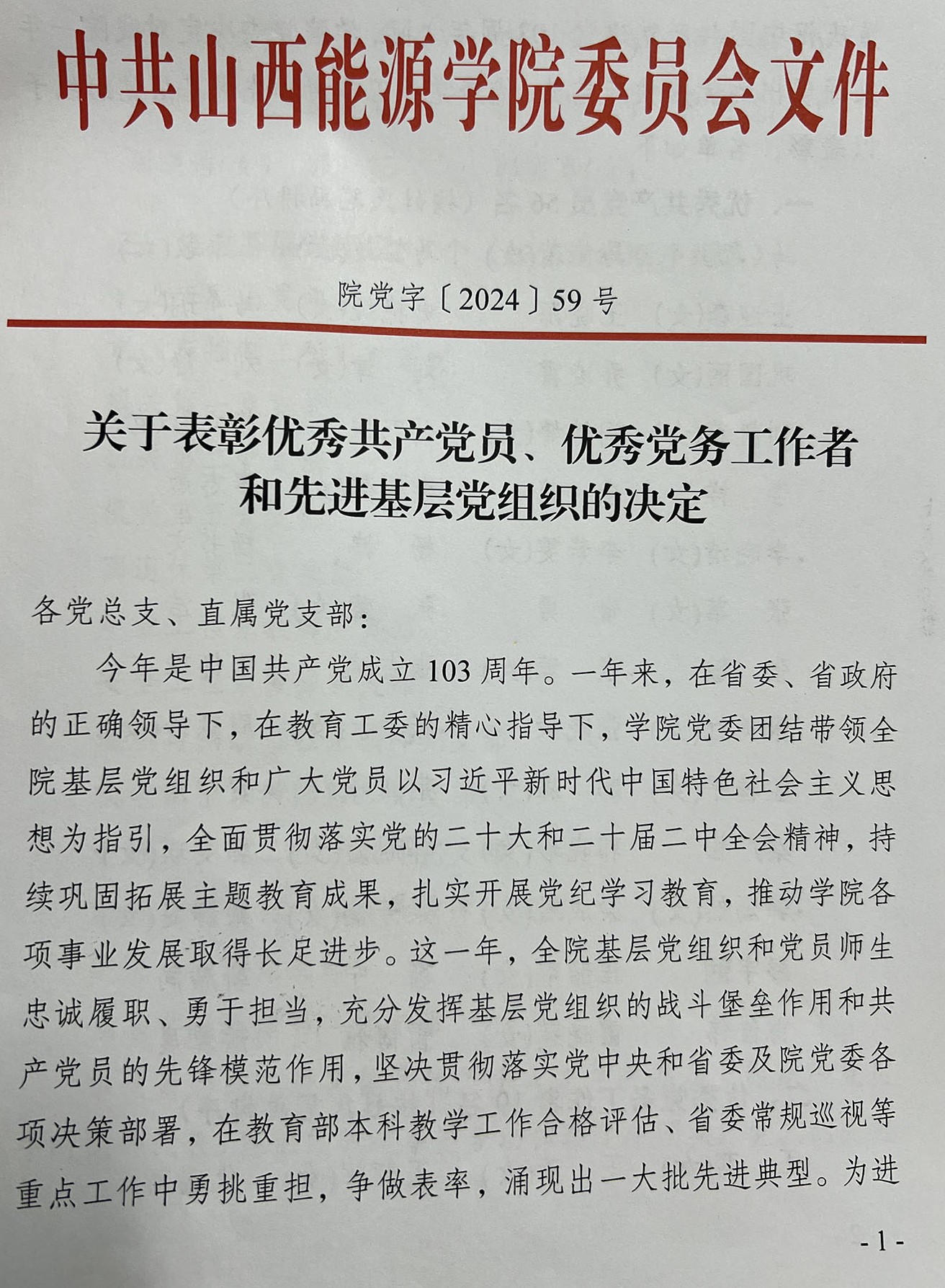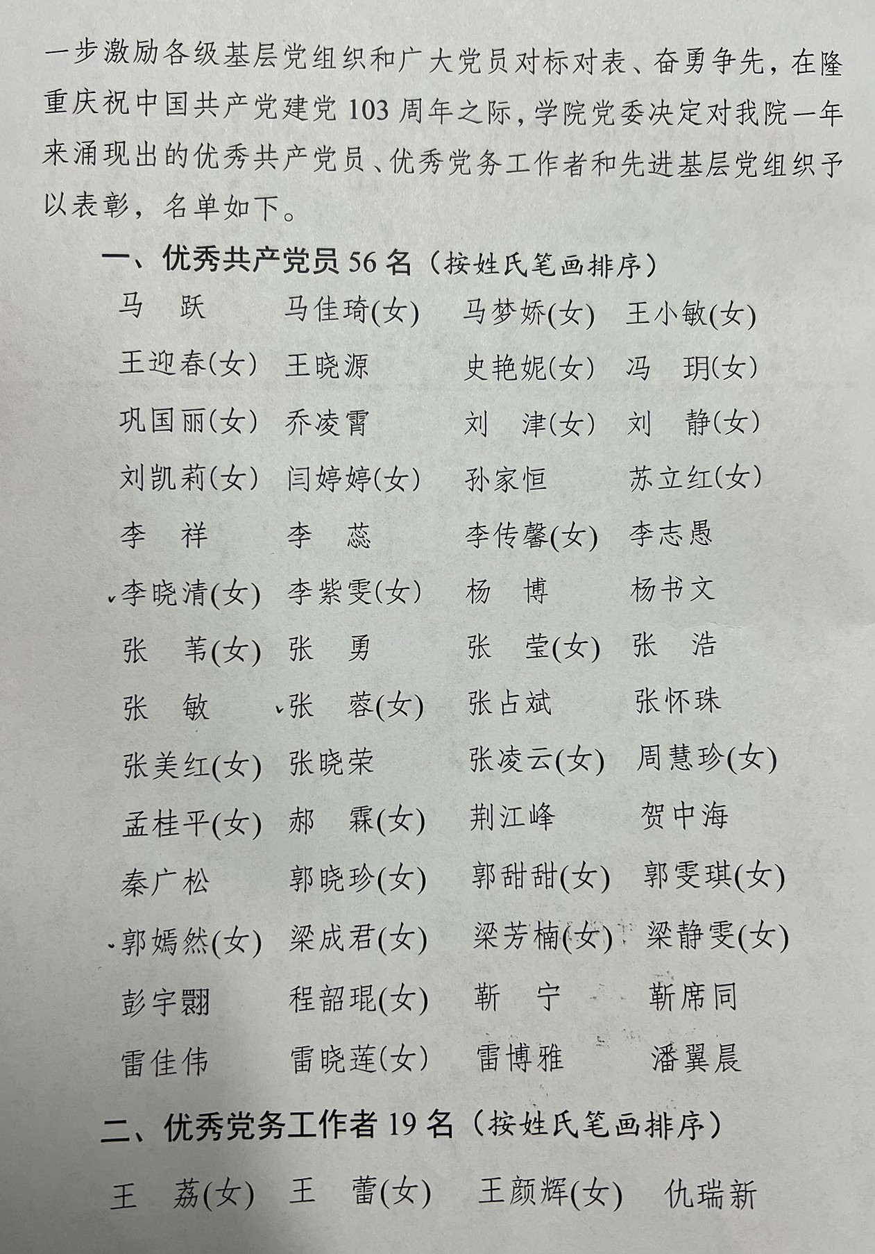 学院党委“七一”表彰名单公布