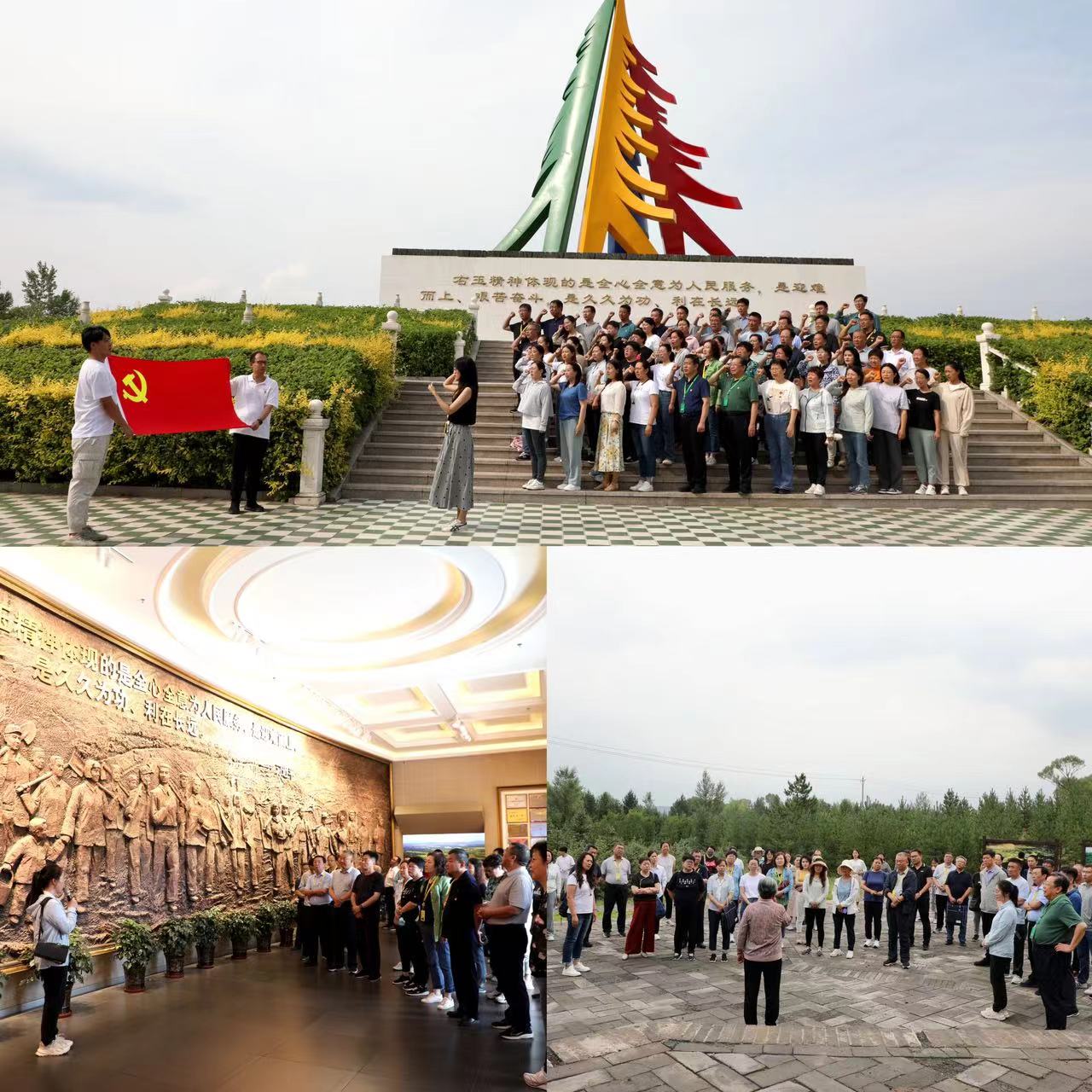 现场教学,实地沉浸感悟。培训期间,学员们先后到黄沙洼、苍头河、绿化丰碑、四五道岭、松涛园、右玉县博物馆、右玉精神展览馆等地进行现场教学,实地倾听右玉故事,真切感悟右玉精神,涤荡心灵、汲取力量。在绿化丰碑前,学员们重温了习近平总书记对“右玉精神”的重要指示,面向鲜红的党旗,坚定地举起右拳,重温入党誓词,大家激情满怀,字句铿锵有力,充分坚定了弘扬右玉精神、接续干事创业的信心与决心,表达了为党的事业奋斗终身的决心。在黄沙洼,三战黄沙洼的亲历者——老支书王明花为学员们讲述了当年“红姑娘”把青春和汗水挥洒到黄沙洼的故事,让学员们对右玉人民坚持不懈植树造林的艰辛历程更增添了一份敬仰。在右玉精神展览馆,一幅幅图片、一组组数字、一个个感人肺腑的事迹,诠释了“绿水青山就是金山银山”绿色发展理念的新时代内涵,学员们深深地被右玉干部群众齐心协力抗击风沙、播撒绿荫的艰辛历程所震撼。