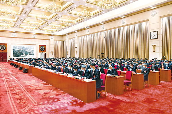 1月22日,十九届中央纪委五次全会在北京开幕。图为五次全会第二次大会现场。本报记者 张梓健 摄