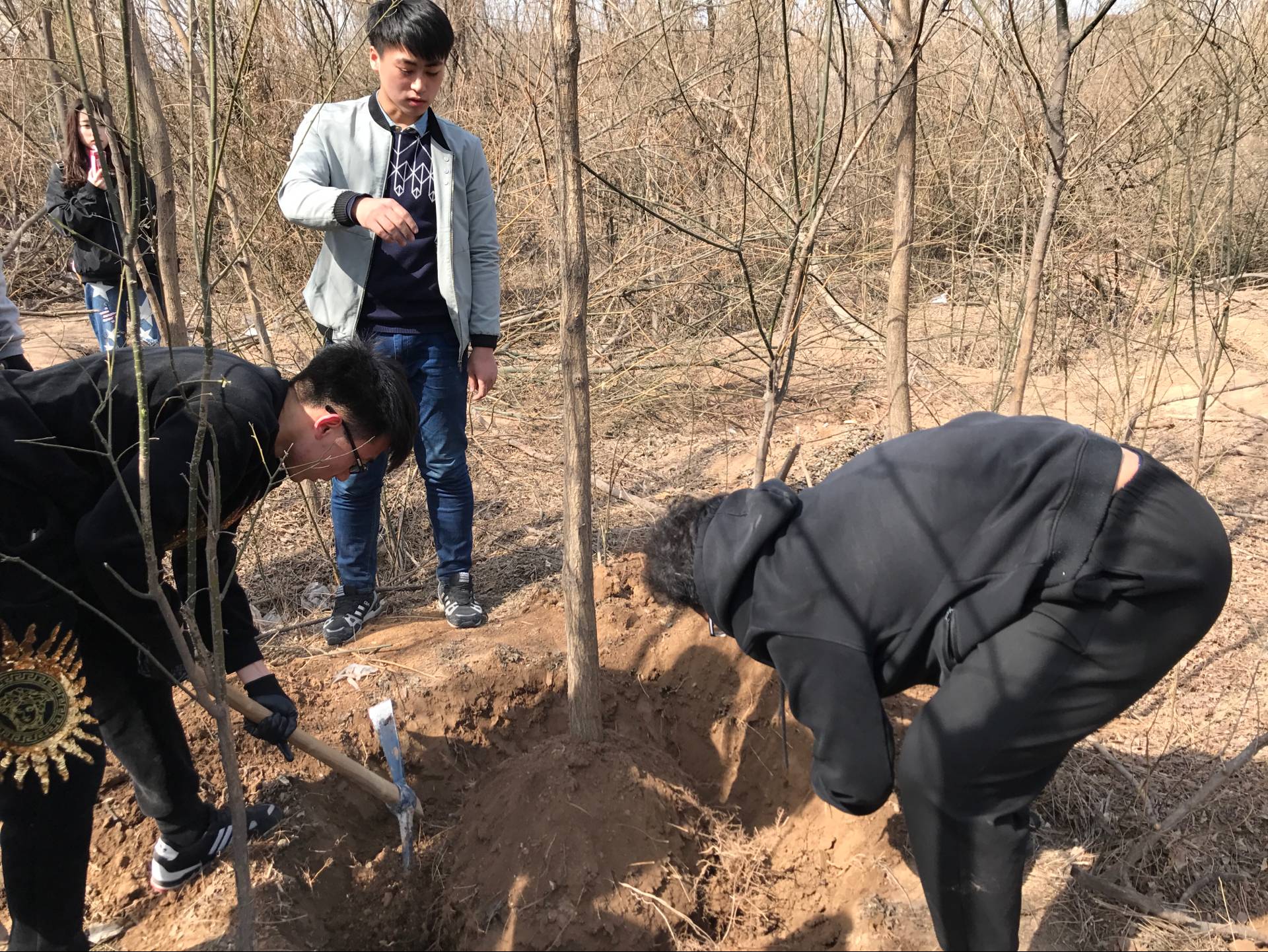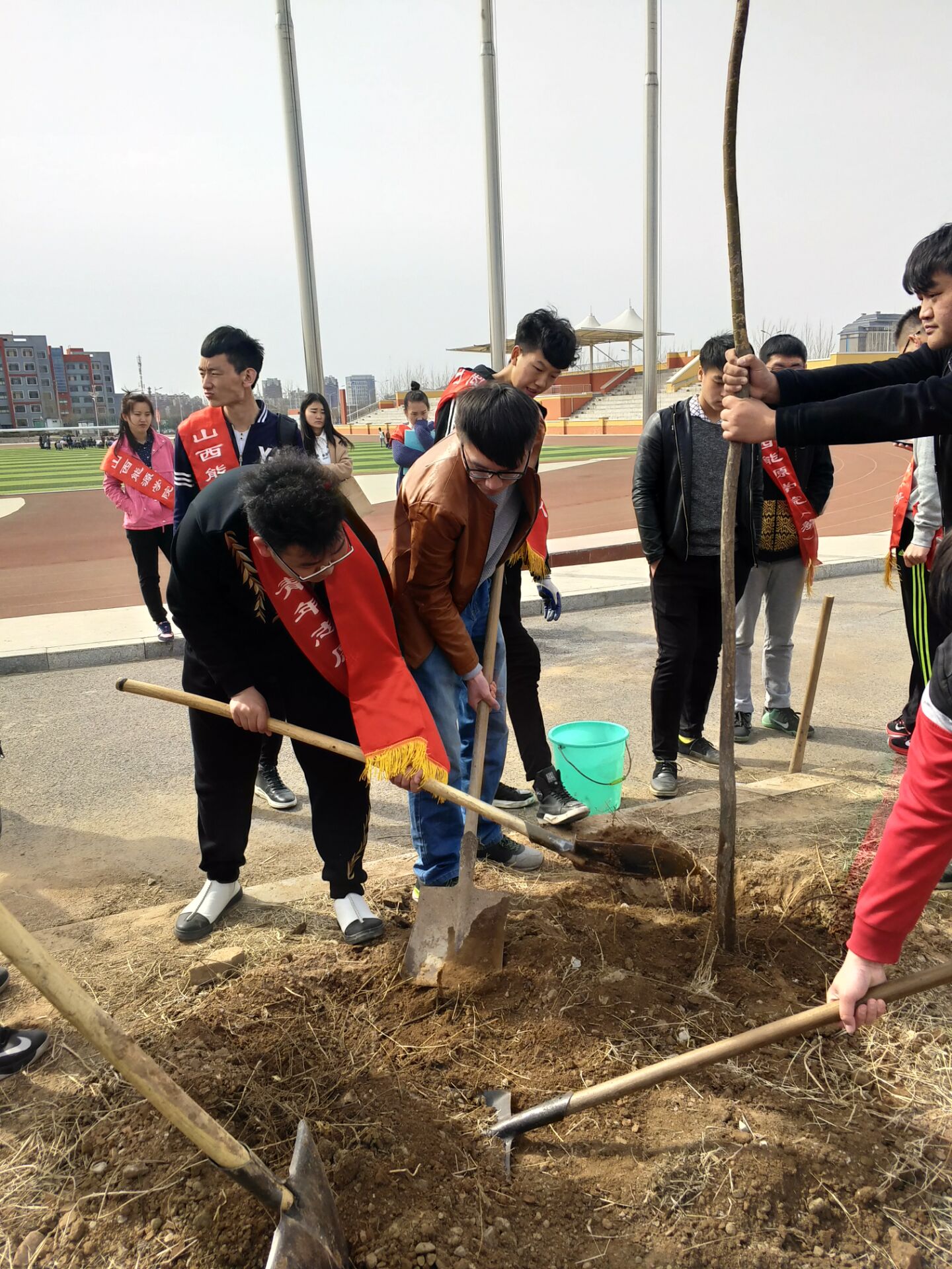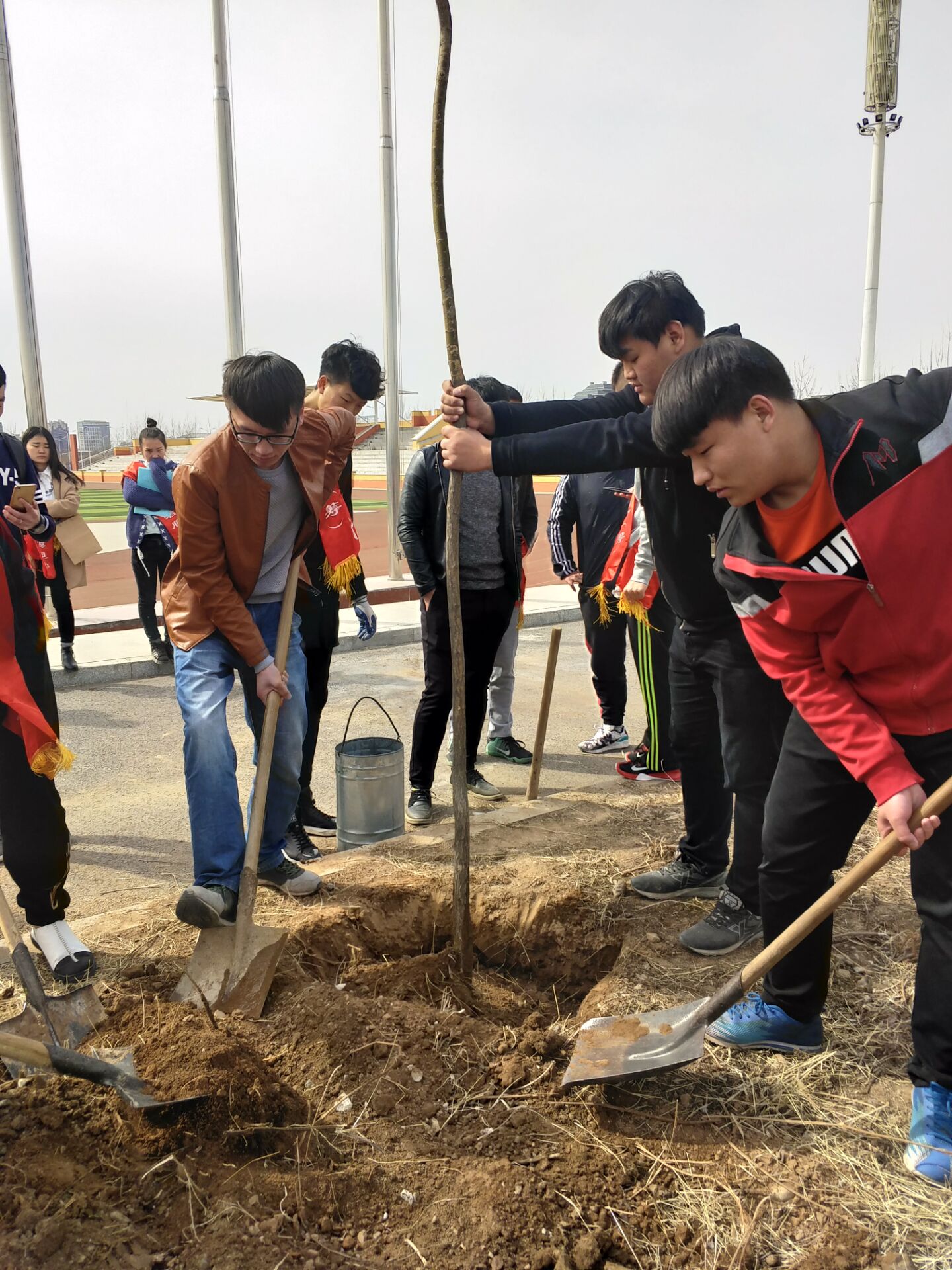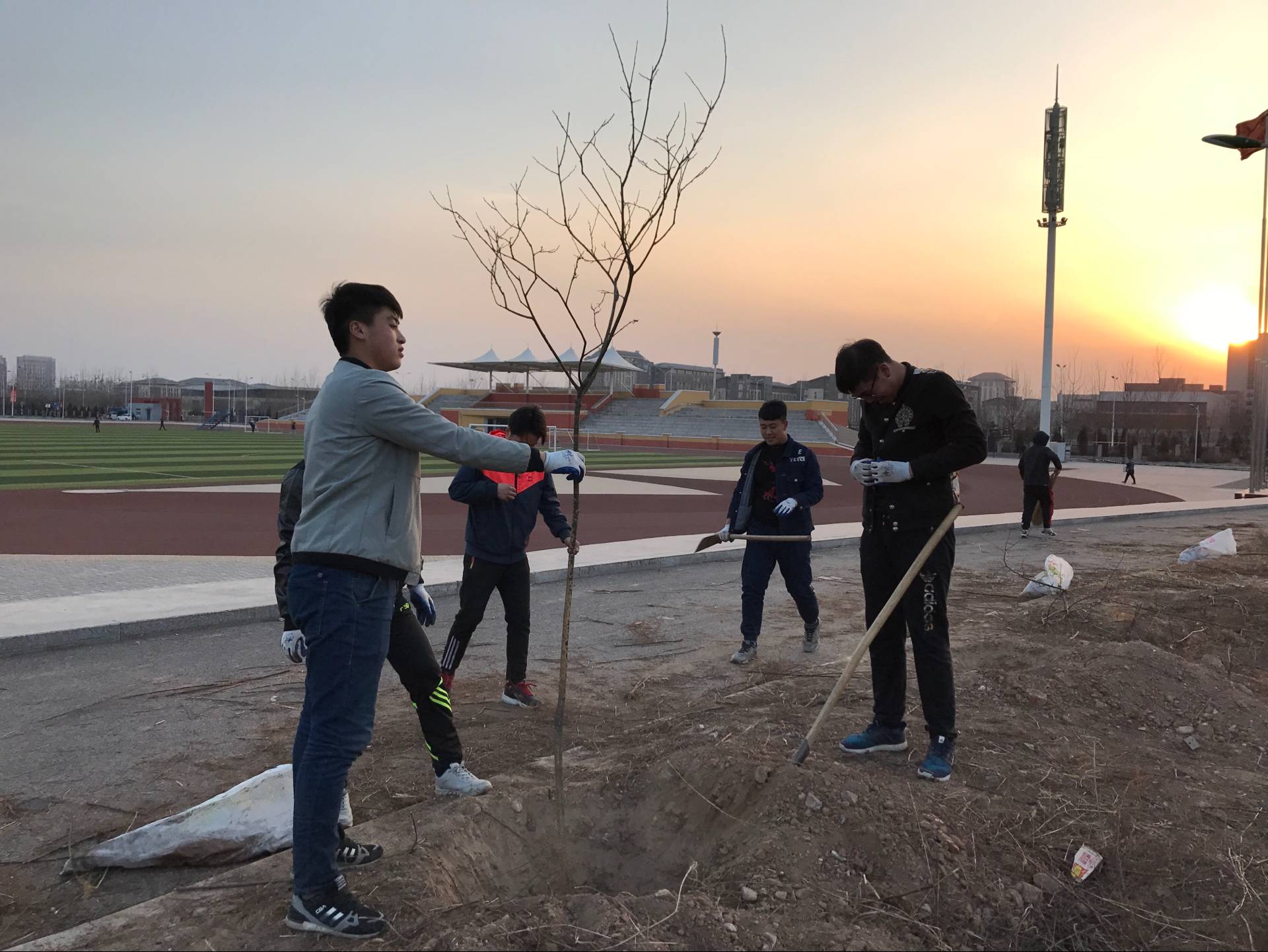 3月12日,一年一度的植树节,我们计算机系同学来到校园内的国旗附近,除草,松土,栽下希望,寄托梦想。愿小树茁壮成长,与我们一起见证学校的发展壮大和辉煌!