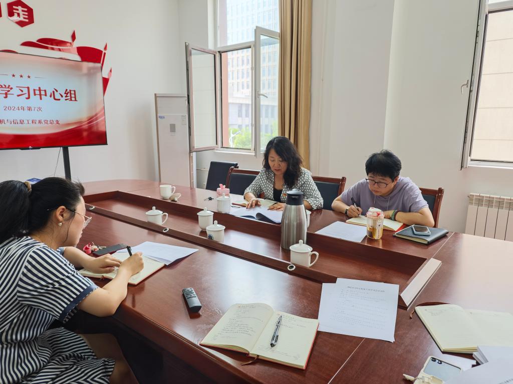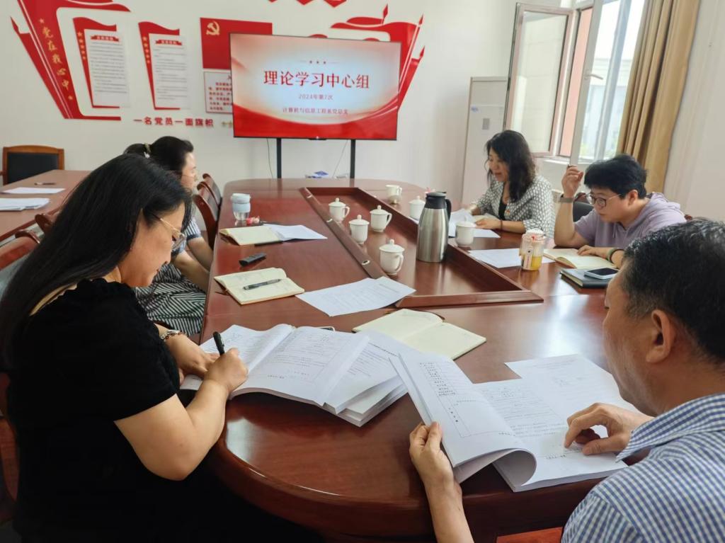 2024年7月9日下午,计算机与信息工程系党总支理论学习中心组在产学研2202召开2024年第7次学习会议。会议由党总支书记邓越萍主持,系党总支理论学习中心组成员参加学习。