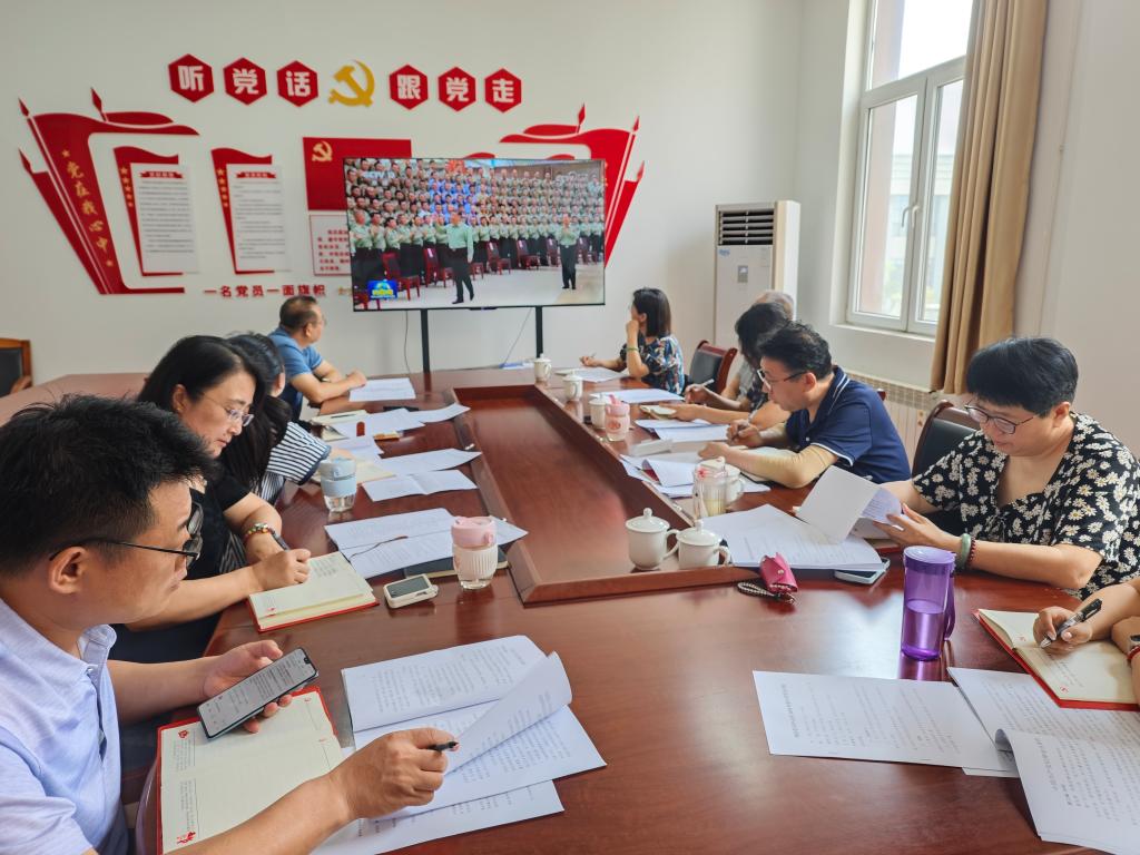 参会成员先集中观看学习了习近平对学校思政课建设作出重要指示精神、习近平为第六批全国干部学习培训教材所作<序言>精神、习近平在山东考察时强调以进一步全面深化改革为动力奋力谱写中国式现代化山东篇章的视频内容。