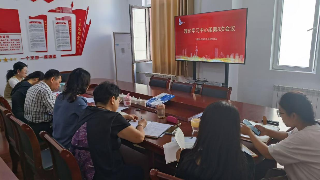 2024年8月29日下午,计算机与信息工程系党总支理论学习中心组在产学研2202室召开2024年第8次学习会议。会议由党总支书记邓越萍主持,系党总支理论学习中心组成员参加学习。