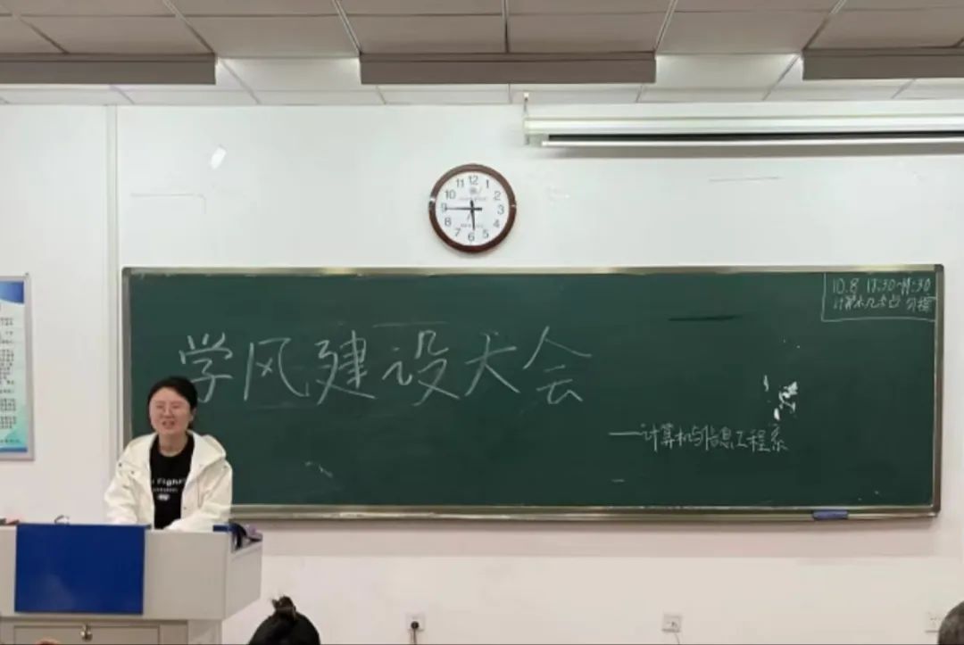 我系组织召开学风建设大会,团学办副主任梁成君、专职辅导员卢晓荣、各班级学生干部以及学生代表参加本次会议。