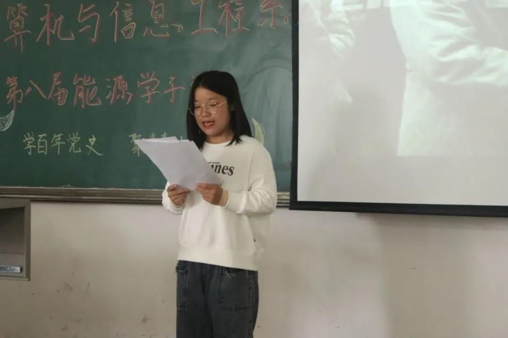 为深入贯彻落实习近平总书记“学史明理、学史增信、学史崇德、学史力行,学党史、悟思想、办实事、开新局,以昂首姿态奋力开启全面建设社会主义现代化国家新征程”的要求,我系于2021年5月11日下午开展了以“学百年党史、聚青春力量”为主题的第八届“能源学子说”活动。