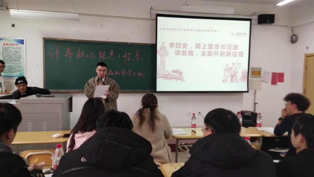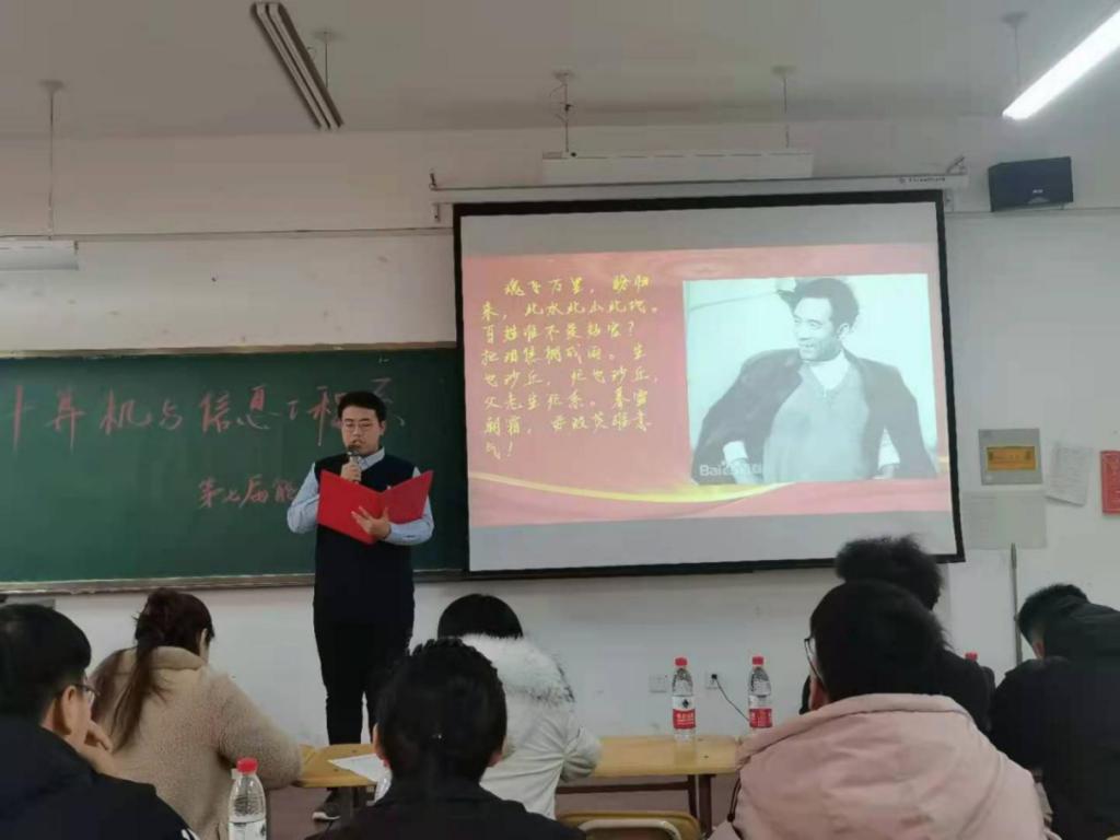 诗歌朗诵组的卢晓闯同学将情景表演与诗歌朗诵有机结合,场面震撼人心;文武阳同学饱含深情地诵读革命诗词,同学们沉浸在毛主席诗词的巨大魅力中,深切感受一代伟人的革命情怀和豪迈气概,仿佛又回到了那个家国相忧、血火相淬的峥嵘岁月。主题演讲组的白志武同学将自己的演讲与音乐完美融合,对在全党全国各族人民共同抗疫中展现出来的英雄进行了赞美和讴歌,使同学们更加坚定了为实现中华民族伟大复兴而努力学习的决心。