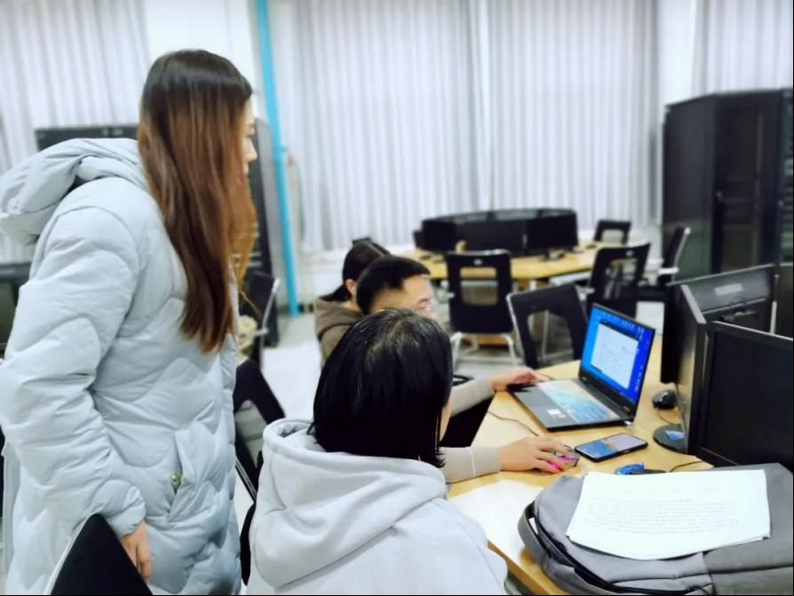 专职辅导员赵彩霞老师来到考场,巡视参赛同学的完成情况。各监考人员也尽职尽责。