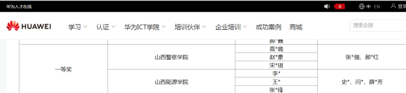 成果10:山西能源学生王*、李*与**获得华为全国大学生ICT大赛(山西省赛)一等奖