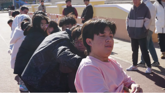 少年联臂登场,勇士陈力就列。各队伍斗志昂扬,随着比赛一声哨响,同学们铆足劲、拉紧绳,倾全力于一身,集合力于一绳,齐力奋战。