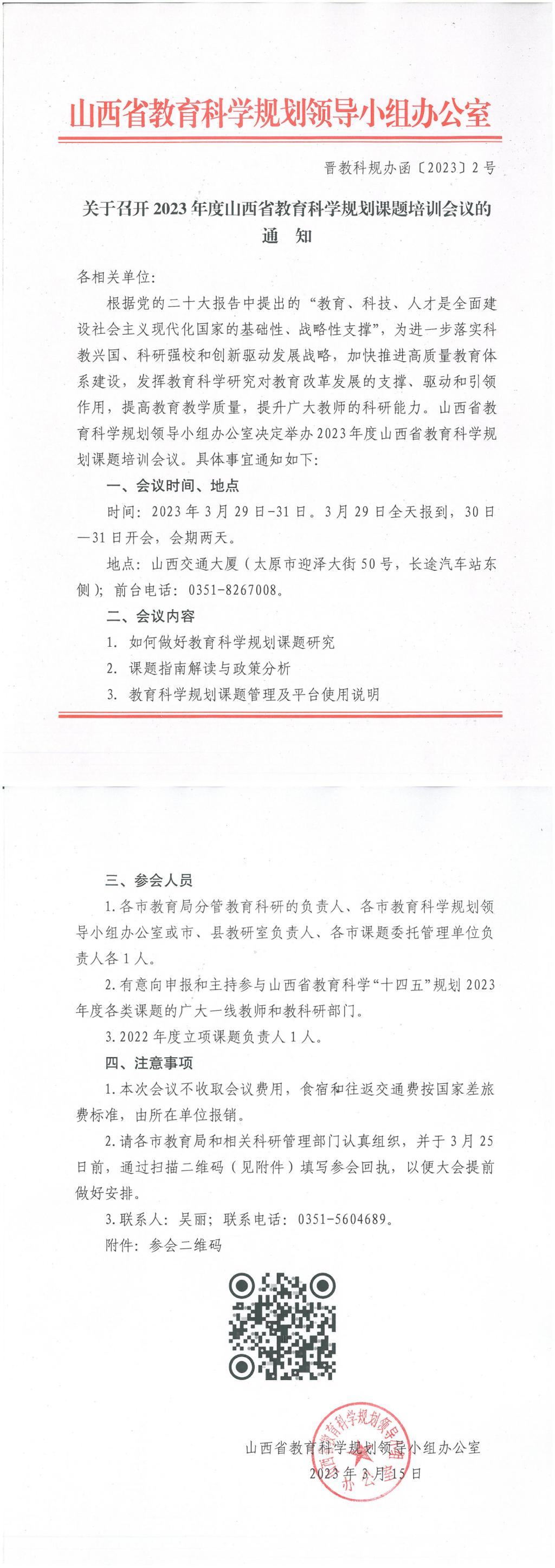 关于召开2023年度山西省教育科学规划课题培训会议的通知.pdf