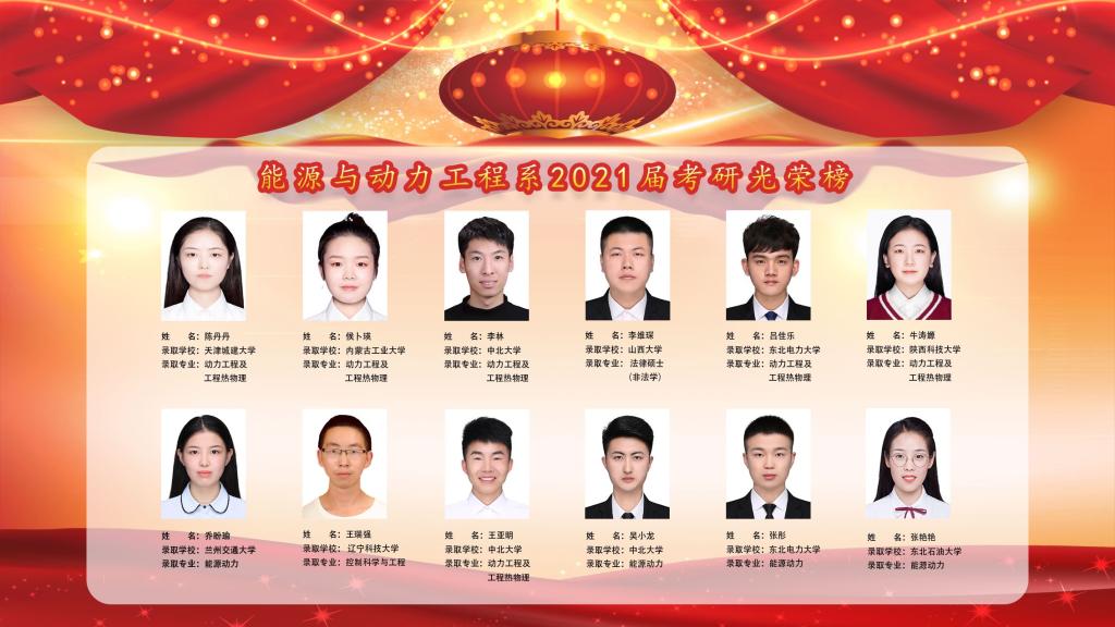“星光不负赶路人,天道酬勤佳音来”。随着2021届全国研究生入学考试复试结果的陆续公布,能源与动力工程系考研录取喜报频传。据统计,我系共有四十人参加研究生考试,其中有十二位同学成功上岸,取得优异成绩,获得理想录取通知书。