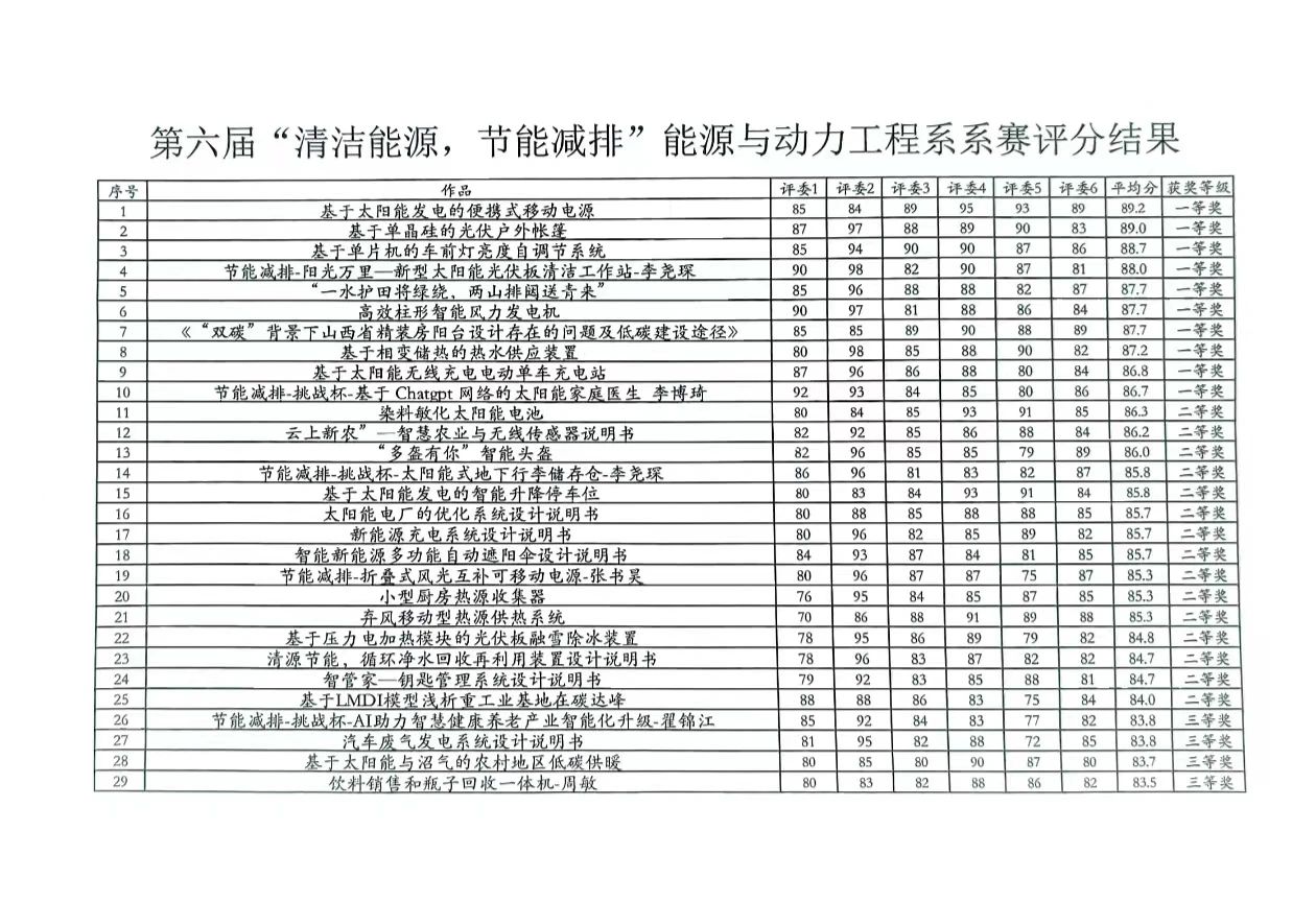 为贯彻落实《全国大学生节能减排社会实践与科技竞赛》《中国可再生能源学会大学生优秀科技作品大赛》精神,充分体现“节能减排,主动作为;实践创新,交融育人”的精髓,能源与动力工程系积极动员学生参与比赛,竞赛共收到51项作品,经过系级评审,推选出了一等奖10项,二等奖15项,此外还评出了三等奖20项,优秀奖6项。