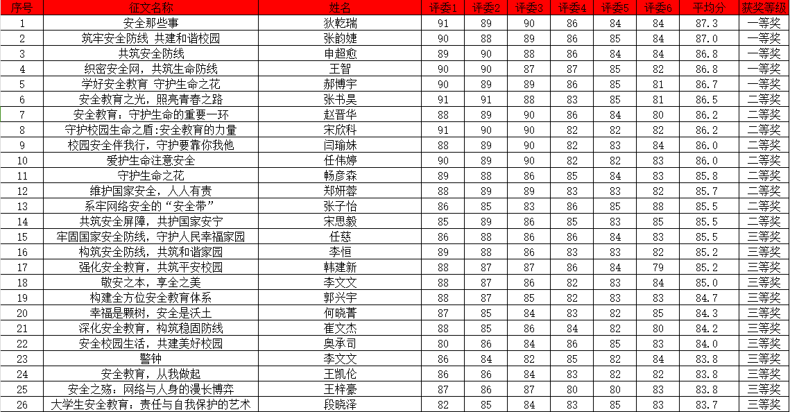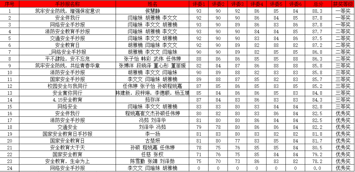 为引导同学们关注国家安全教育,提高国家安全意识,增强法治观念和安全防范能力,我系举办了“4·15”安全主题征文、手抄报比赛。在活动进行期间,参赛者们为我们提供了许多优秀的参赛作品,充分展现了同学们对于安全教育的深刻思考和独特见解。经过层层筛选,获奖名单公示如下: