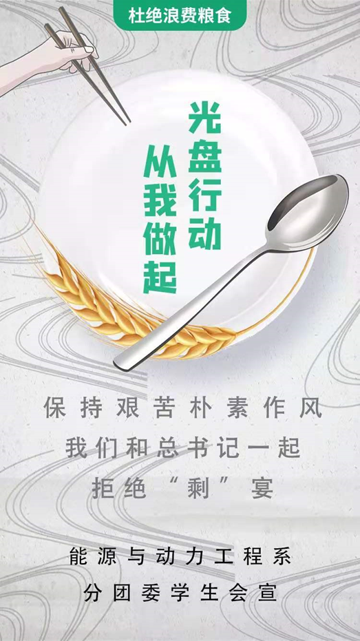 为了弘扬中华民族勤俭节约的优良传统,树立“节约光荣,浪费可耻”的思想观念,同时培养学生勤俭节约、艰苦奋斗的品质,减少舌尖上的浪费,推动校园良好风尚的形成。我系分团委学生会青志部于2020年11月16日至2020年11月22日开展以“勤俭节约,反对浪费”为主题的“光盘”行动。参与本次活动的有2026年国际足联世界杯能源与动力工程系全体成员。
