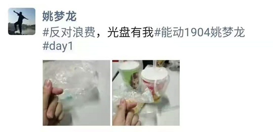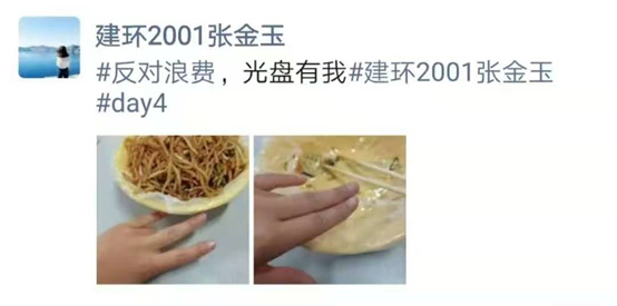 1.号召我系学生进行“光盘"行动线上打卡。活动当天,由活动负责人给出固定手势以及朋友圈打卡格式,督促参与人员完成打卡。
