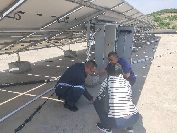 为进一步了解屋顶光伏项目的具体实施情况,我院基建处负责人韩晓东、电气系林异凤老师、后勤处胡宝山老师、能动系党总支书李秀琴、能动系教师党支部书记侯红以及部分教师代表于2021年5月21日前往山西省吕梁市临县调研屋顶光伏项目。