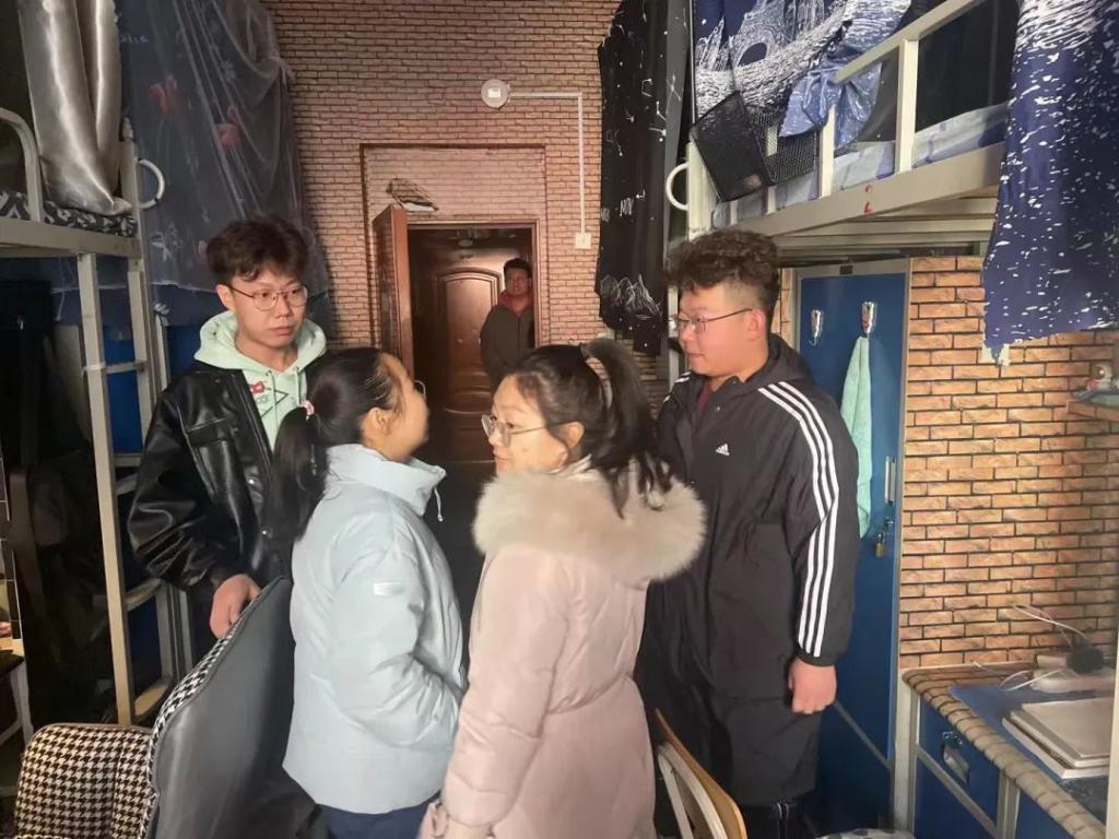 2.宿舍走访中,韩书记和辅导员送来亲切的问候,与到校学生展开交谈。首先关心的是学生身体健康,了解学生们新冠病毒感染情况。其次询问了学生们在开学之初遇到的困难,并表示有需要可以向辅导员反映。