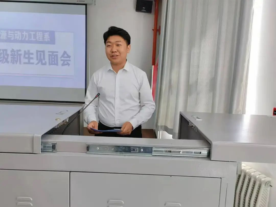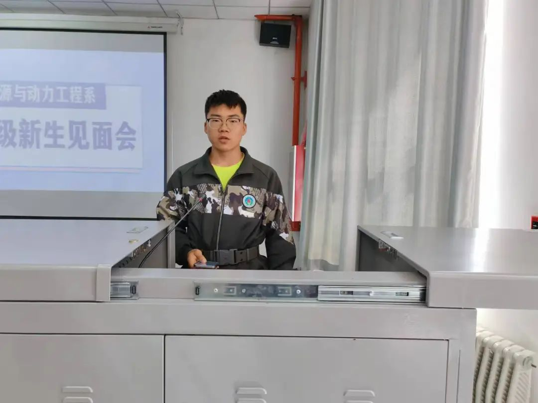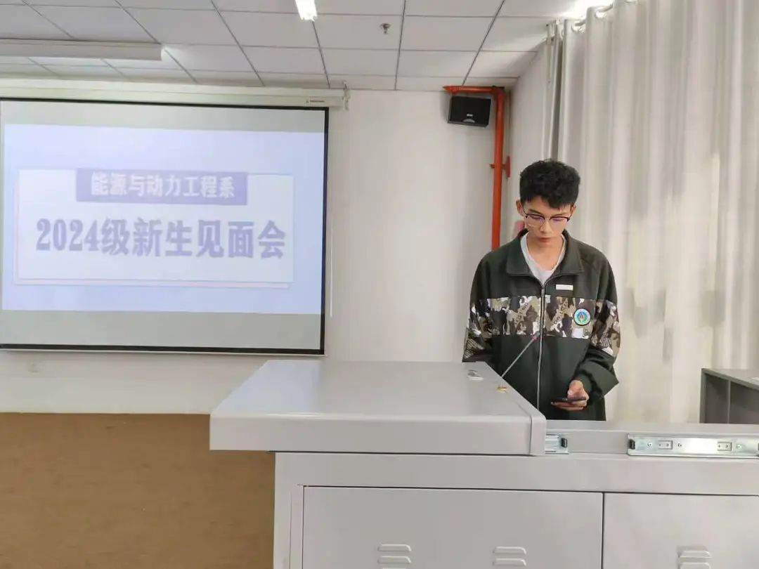 学生会主席结合自身经历向同学们提出以下建议:学习是大学生活的重点,端正学习态度才能学以致用、回报社会;做任何事情保持态度认真才能更好地投入学习、工作与生活。最后,他介绍了能源与动力工程系分团委学生会,鼓励大家加入学生会,共建能动系大家庭。