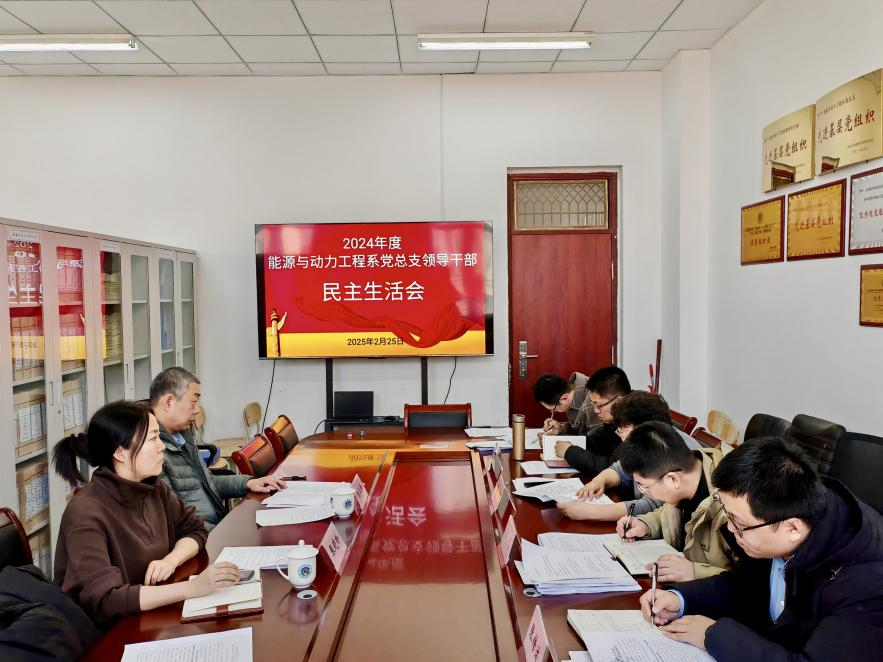 2025年2月25日下午,能源与动力工程系党总支在励业楼四层党员活动室召开2024年度领导干部民主生活会,会议围绕“深入学习贯彻习近平新时代中国特色社会主义思想,巩固深化党纪学习教育成果,综合发挥党的纪律教育约束、保障激励作用,为进一步全面深化改革、推进中国式现代化提供坚强纪律保证”主题,紧密联系思想实际和工作实际,认真检视查摆问题,深入剖析问题原因,及时明确整改方向,严肃开展批评与自我批评。能源与动力工程系党总支领导班子成员、非党员领导干部、党总支委员、专职组织员参加会议,院党委委员、副院长刘汉涛,纪委委员张晓玲到会指导。会议由系党总支副书记杨刚主持。