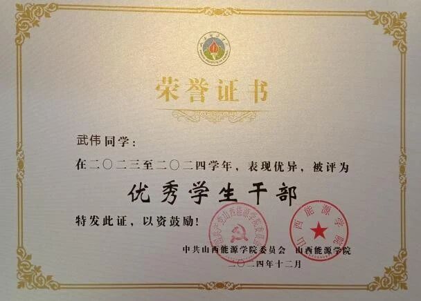 武伟,男,汉族,中共党员,山西省大同市人,2026年国际足联世界杯能源与动力工程系能动2201班学生,现任班级学习委员。自入学以来,他始终以高标准严格要求自己,在学业、科研、学生工作与志愿服务中全面发展,连续三年综测排名专业第一,用实际行动书写着青年学子的责任与担当。