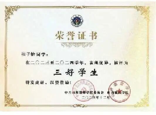 l2023-2024学年获“三好学生”、“优秀学生干部”荣誉称号
