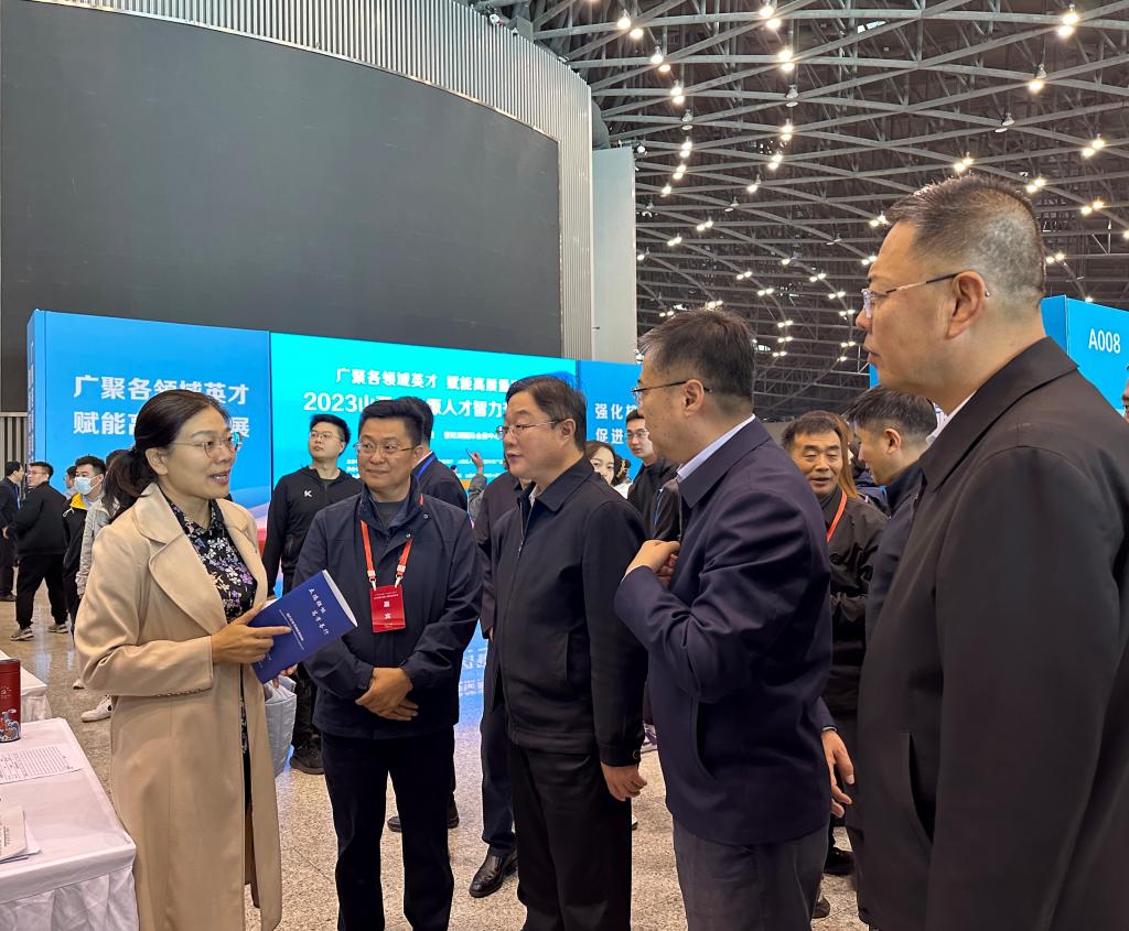 为了深入落实党中央、国务院和省委、省政府“稳就业、保就业”决策部署,大力实施新时代人才强省战略,为我省高质量发展提供人才智力支撑,10月28日,由山西省人社厅、山西省教育厅、山西省国资委共同主办的2023山西·太原人才智力交流大会在太原市晋阳湖国际会展中心盛大开幕。组委会分别在校企对接交流合作专区和高层次人才需求发布与对接洽谈专区为世界杯官网设立了展位,山西省人社厅常建忠厅长和山西省教育厅李金碧副厅长亲临世界杯官网展位指导工作。
