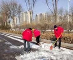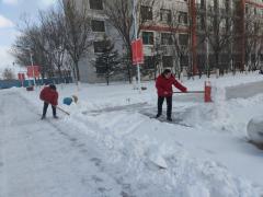 虽然室外气温很低,但大家干劲十足,挥动铁锨、雪铲,齐心协力、配合默契,尤其是物业服务企业,更是全员上岗,马不停蹄地进行清雪工作,一支支扫雪队伍成了文津街一道亮丽的风景线。