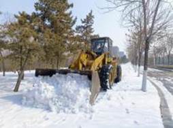 后勤保障部严格按照市城区、学校工作要求,认真做好各类除雪工具和物资的调配、分发工作,及时联系森源物业调动机械铲车对积雪进行清除。铲车清雪作业前,认真对车辆进行安全检查,确保运行车辆车况良好。现场根据天气变化,按先主要道路,后一般街道的顺序,对新建北路至中都北路的文津街路段进行了清雪工作。