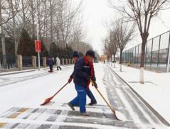 2月21日,伴随着寒潮降温,一场大雪不期而至,校园内银装素裹、美轮美奂。雪景虽美,但积雪和结冰造成了诸多不便和安全隐患。为消除隐患,保障教职员工的出行安全及学校2024年度工作会议等各项工作的有序进行,后勤保障部以雪为令、迅速行动,组织全体党员干部及物业保洁员工对校内重点区域的积雪启动全面清扫行动。
